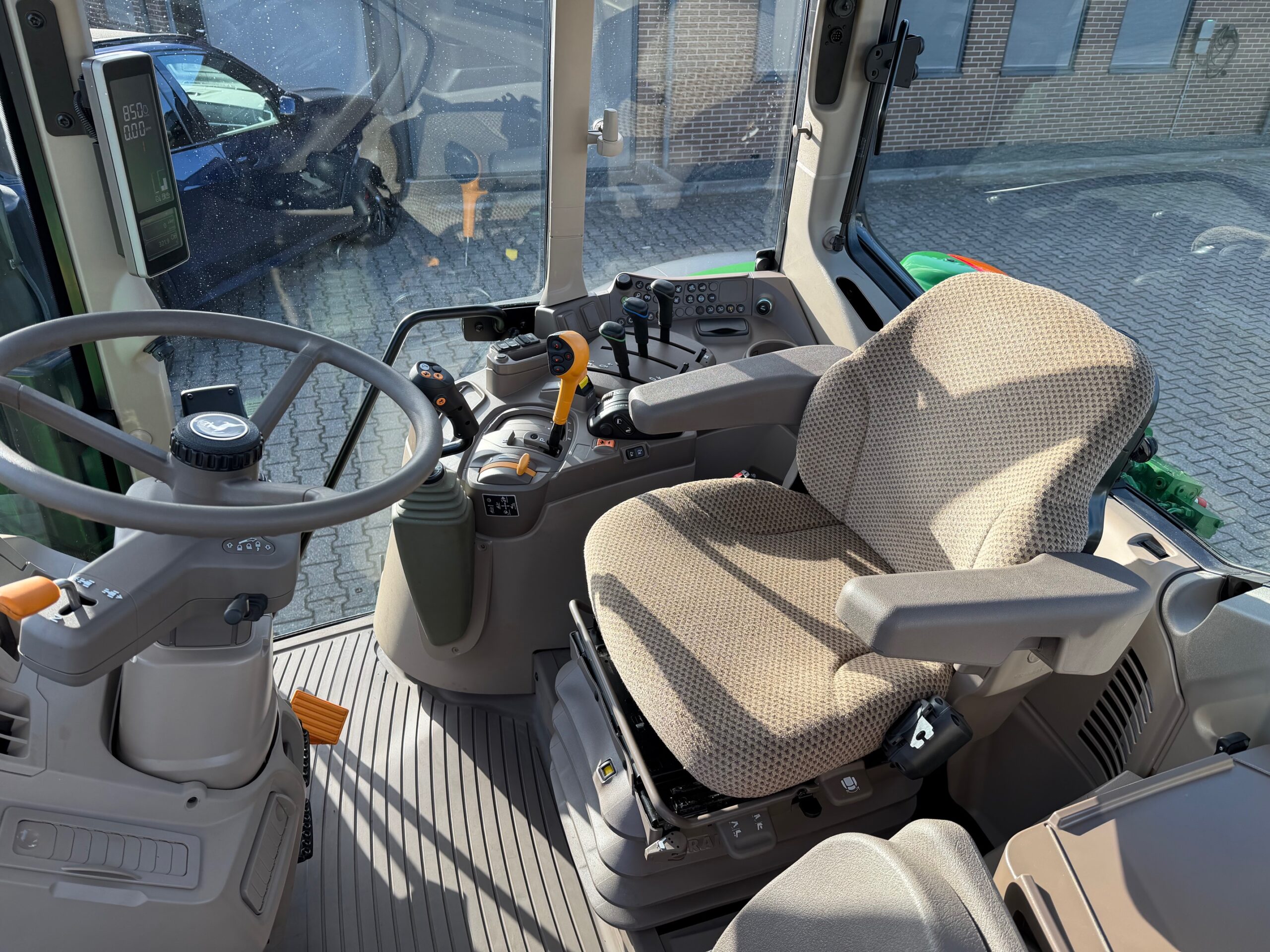 AQ+ met koppelknop, TLS, 3dw en 2-leiding remventiel, LS-aansluitingen, ad-blue, isobus/greenstar ready, draaibare voorspatborden, achterruitenwisser, hef- en pto-bediening op spatbord, voorlader voorbereid (heeft 3x midmound en joystick), panoramadak (ideaal voor voorladerwerk), zonneschermen voor + achter, flessenhouder.