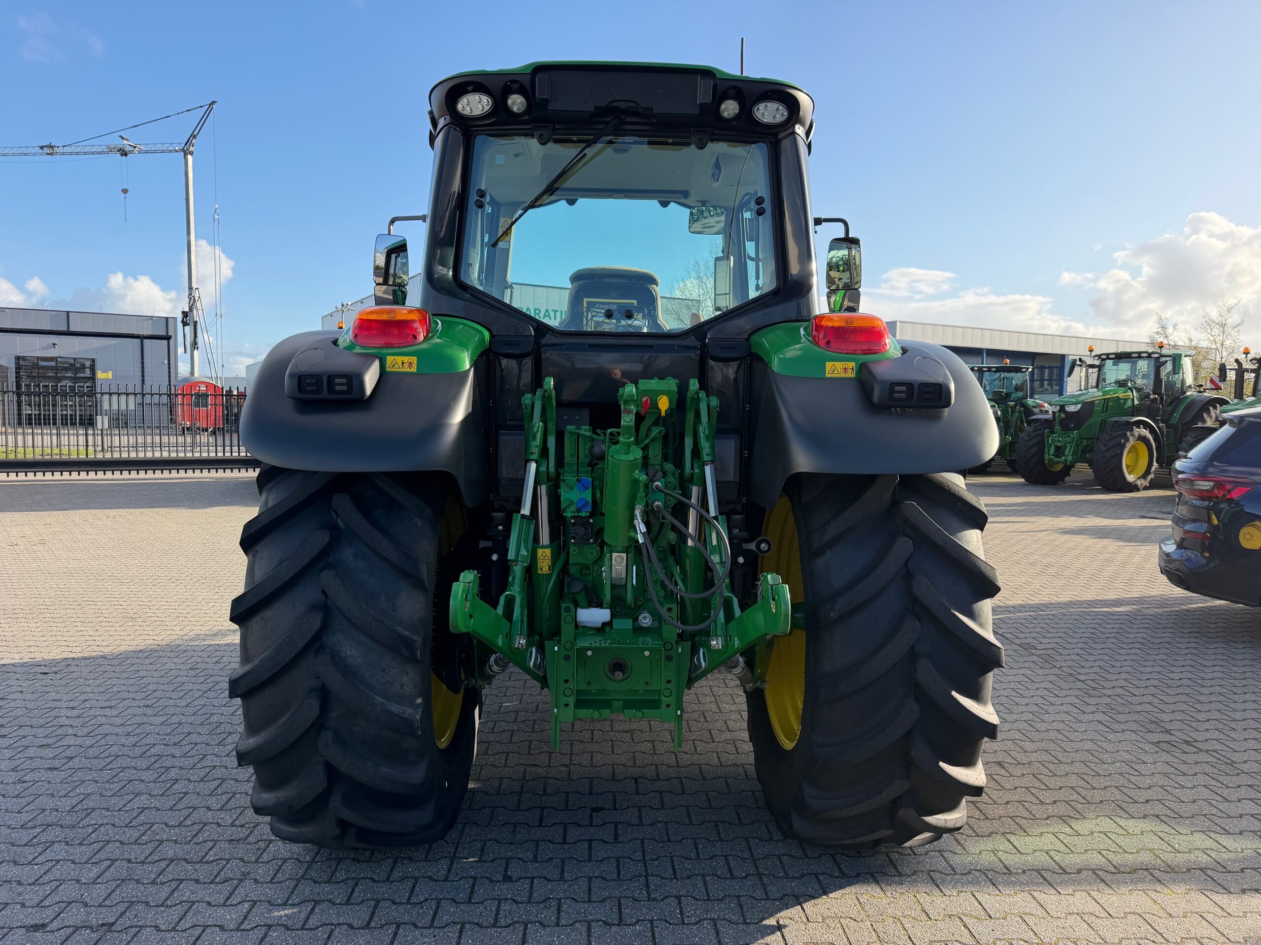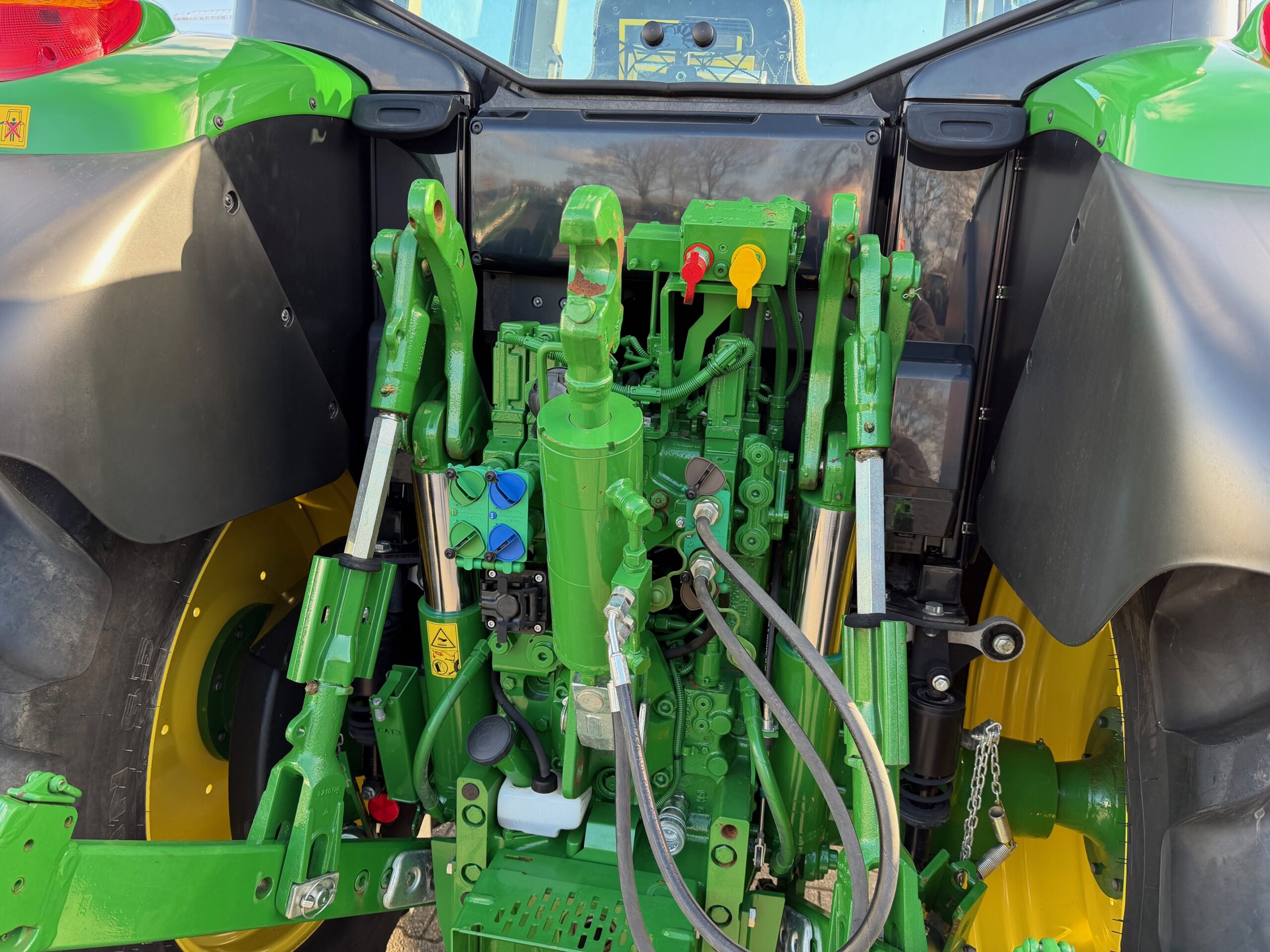 Achterbanden 600/65R38 99%, voorbanden 540/65R24 95%.