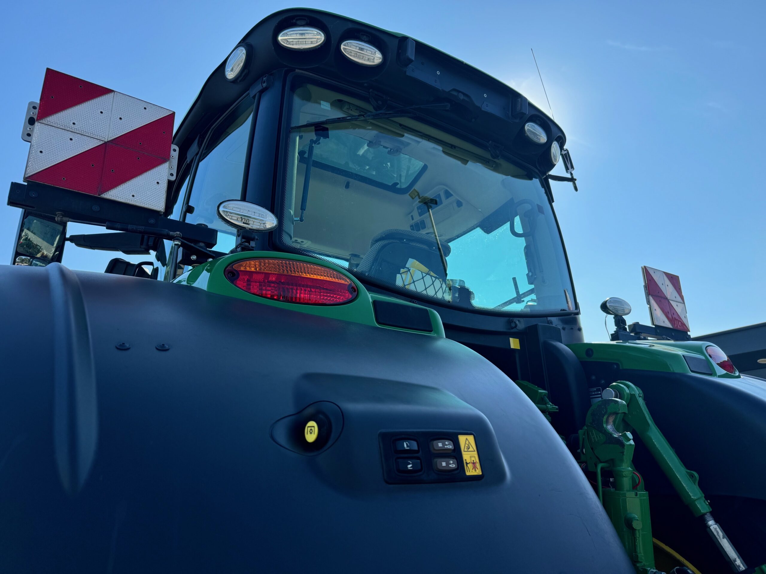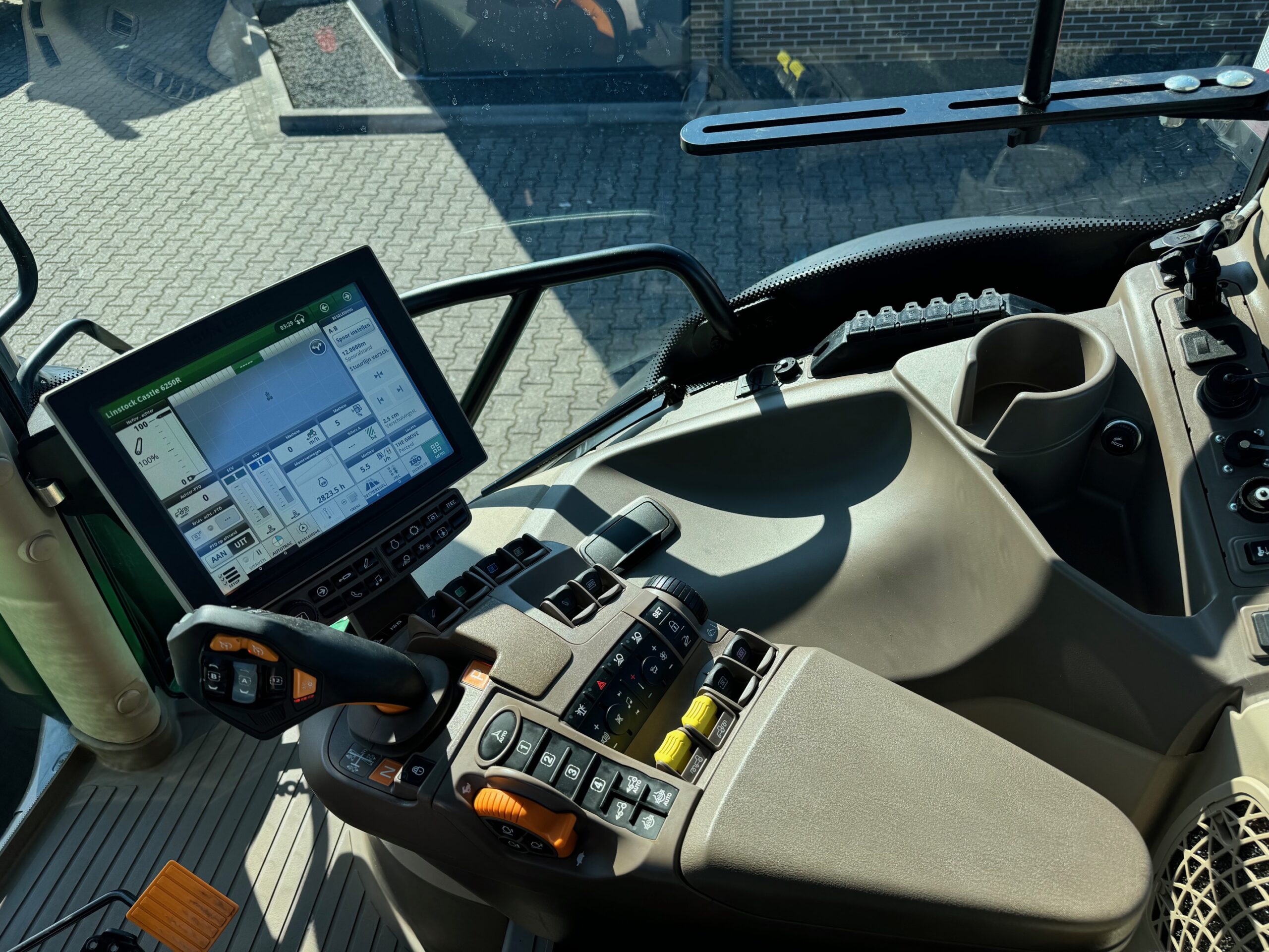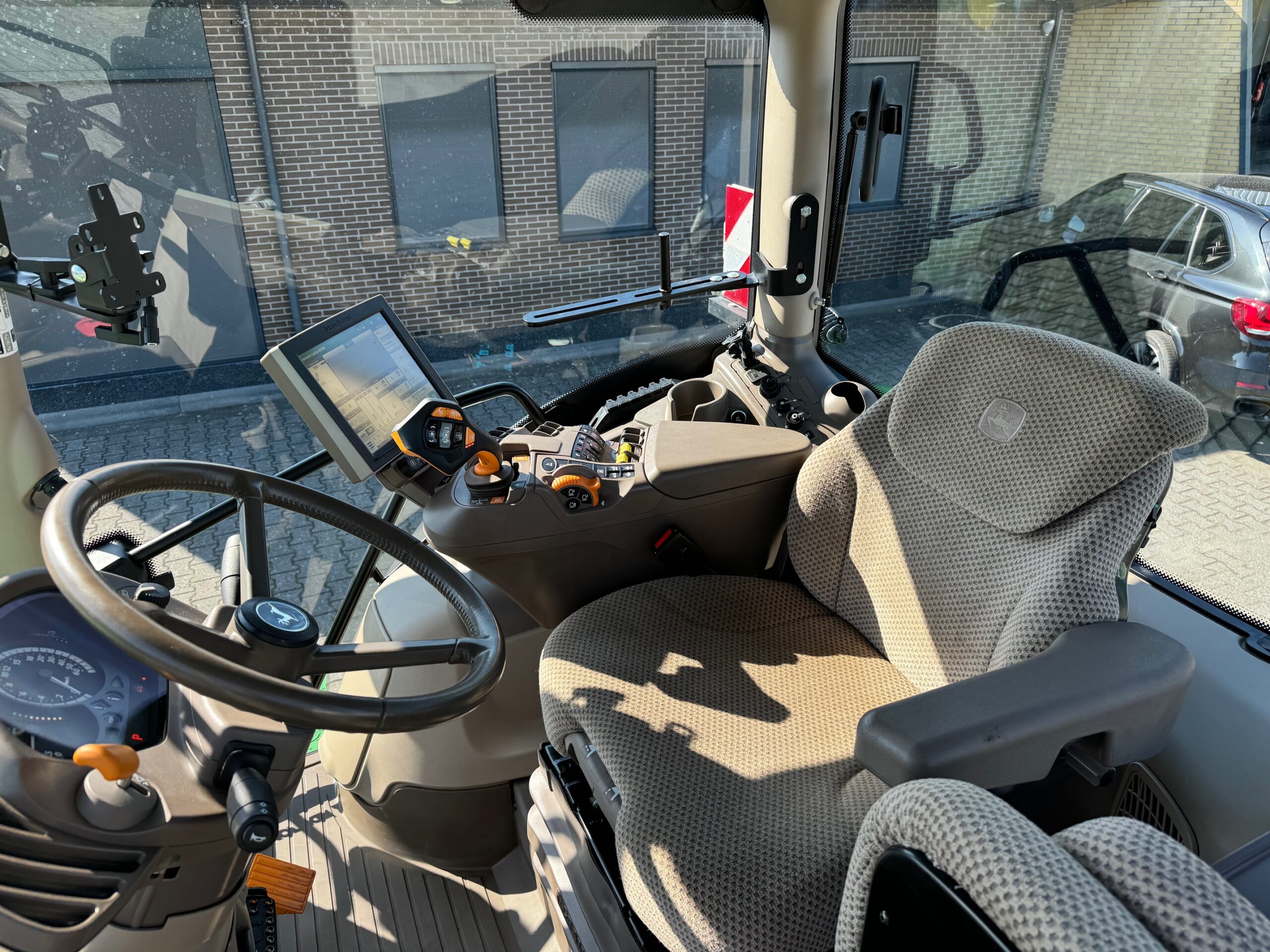 Ultimate uitvoering met Command-Pro, TLS, geveerde cabine, 5dw en remventiel, luchtdruk, LS-aansluitingen, AUTOTRAC-READY + activaties, ABS stekker, airco, glazen dakluikje, LED. ad-blue, B-Stijl cabine (dus met de kleine goed sluitende deur), originele JD fronthef en front-pto met 2dw voorop en frontbediening, hef-, pto- en ventiel-bediening op spatbord, hydraulische topstang, inklapbare breedte borden, chromen uitlaat, draaibare voorspatborden, elektrische- en verwarmde-spiegels, achterruitenwisser, zonneschermen voor + achter, koelvak, leren stuur.