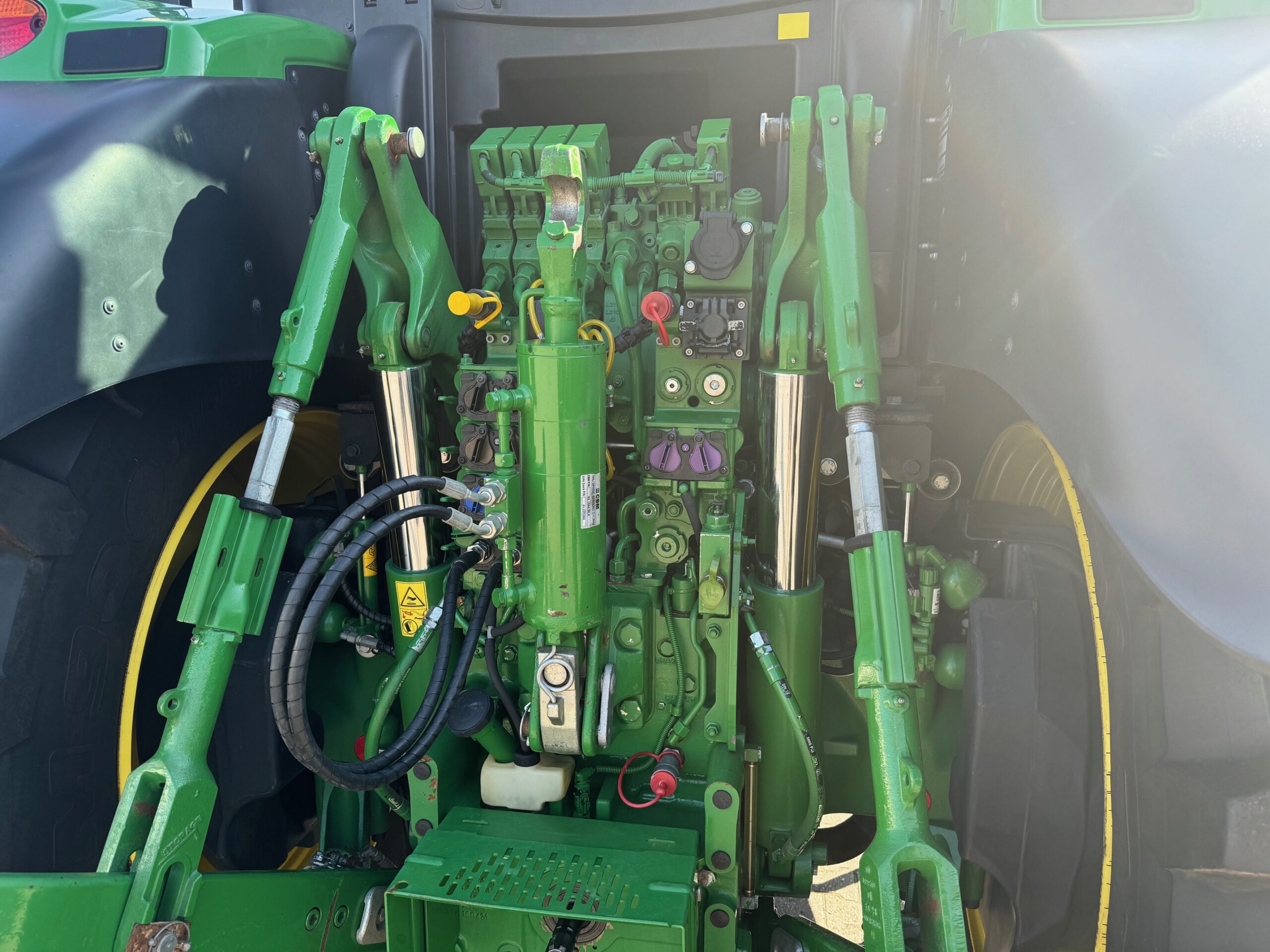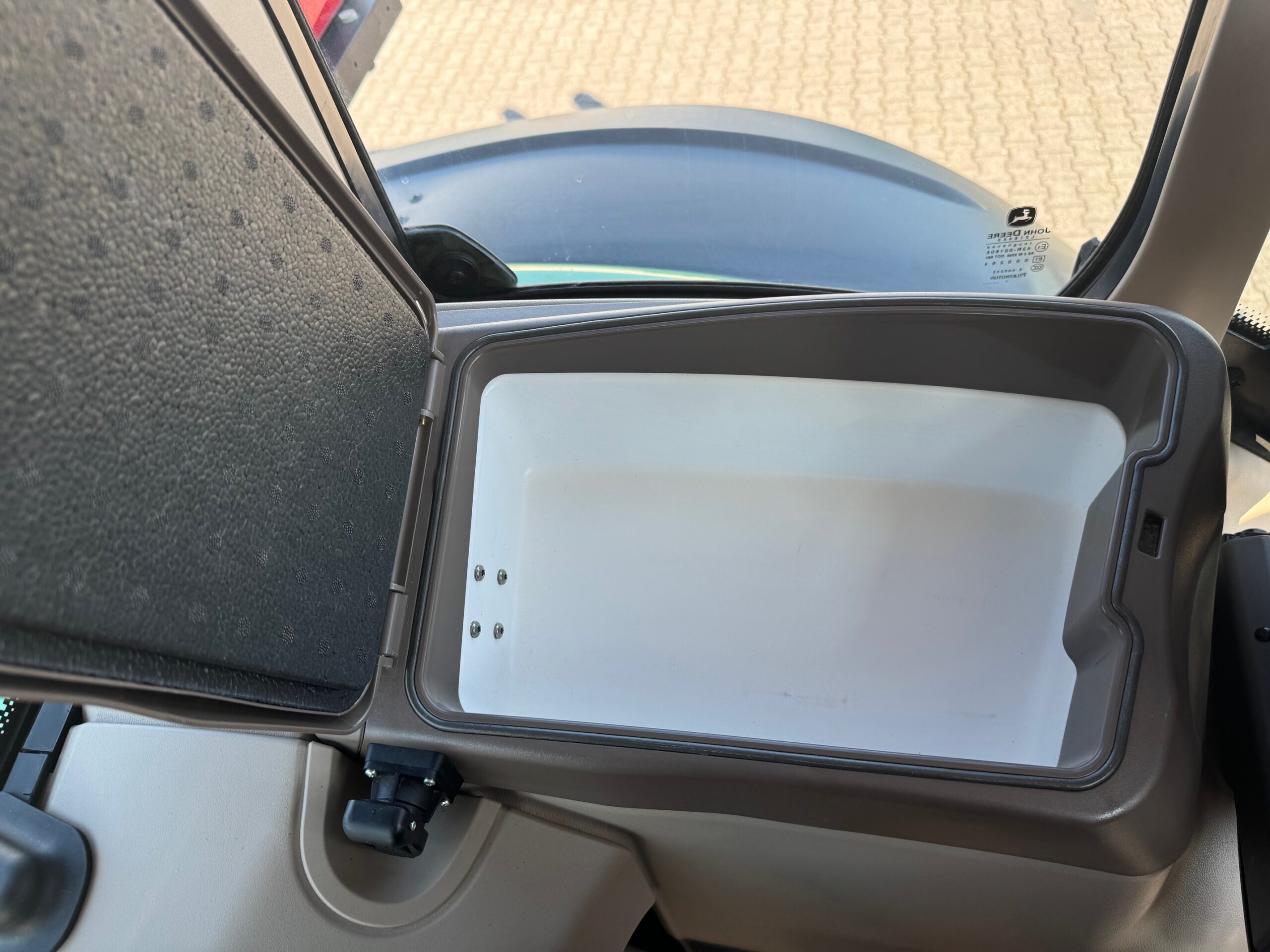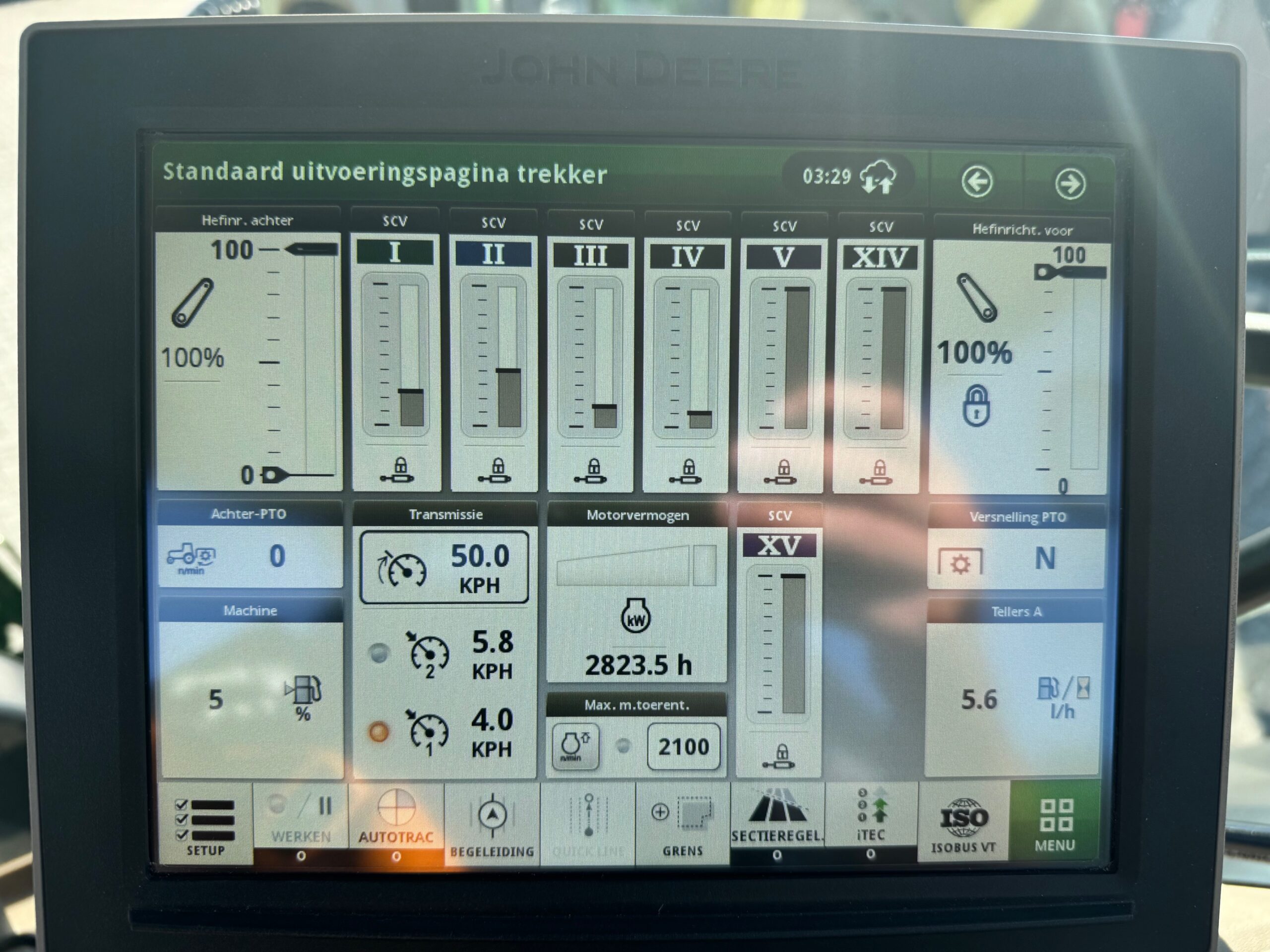 Ultimate uitvoering met Command-Pro, TLS, geveerde cabine, 5dw en remventiel, luchtdruk, LS-aansluitingen, AUTOTRAC-READY + activaties, ABS stekker, airco, glazen dakluikje, LED. ad-blue, B-Stijl cabine (dus met de kleine goed sluitende deur), originele JD fronthef en front-pto met 2dw voorop en frontbediening, hef-, pto- en ventiel-bediening op spatbord, hydraulische topstang, inklapbare breedte borden, chromen uitlaat, draaibare voorspatborden, elektrische- en verwarmde-spiegels, achterruitenwisser, zonneschermen voor + achter, koelvak, leren stuur.