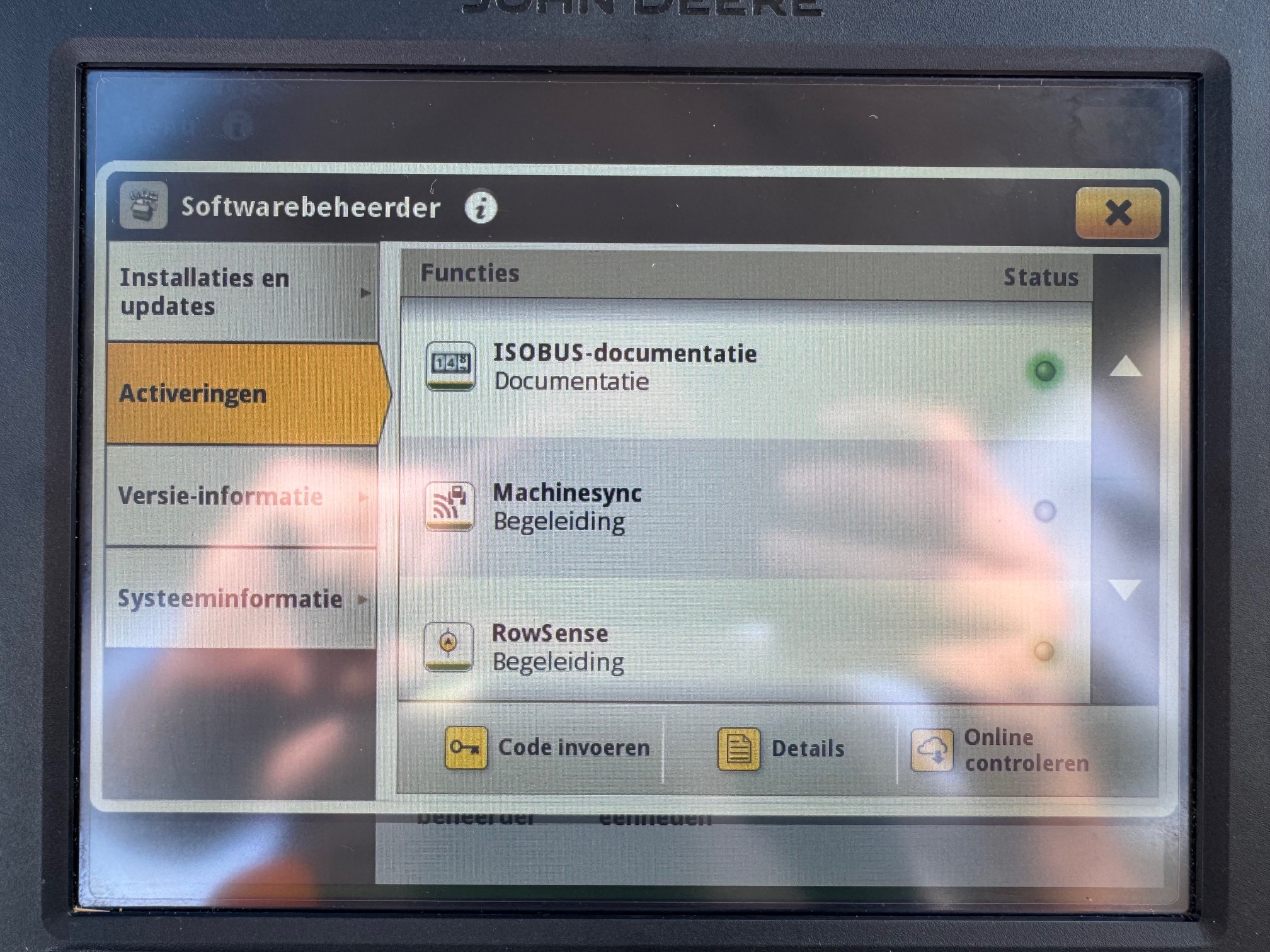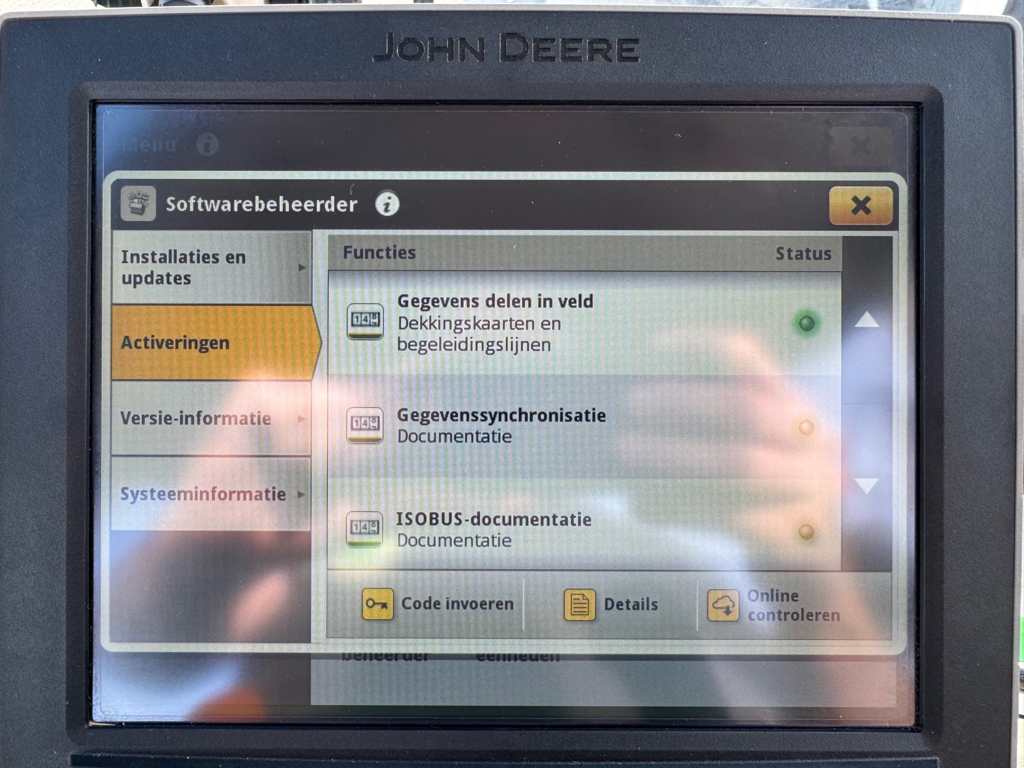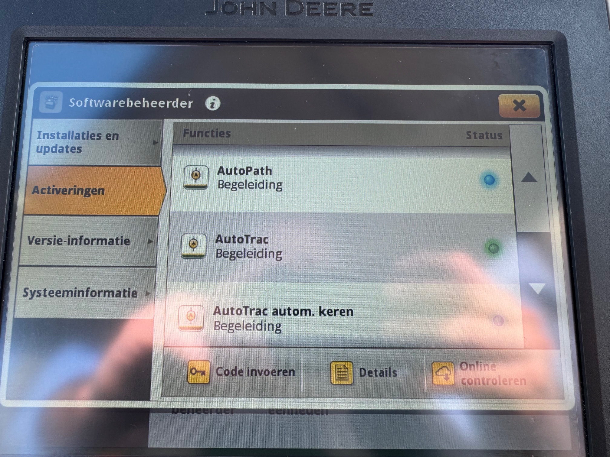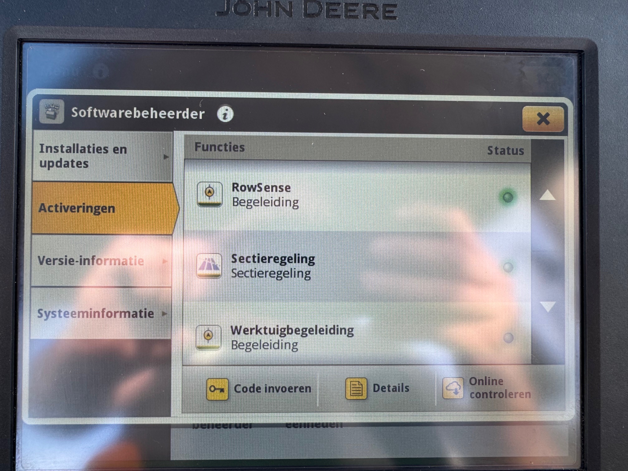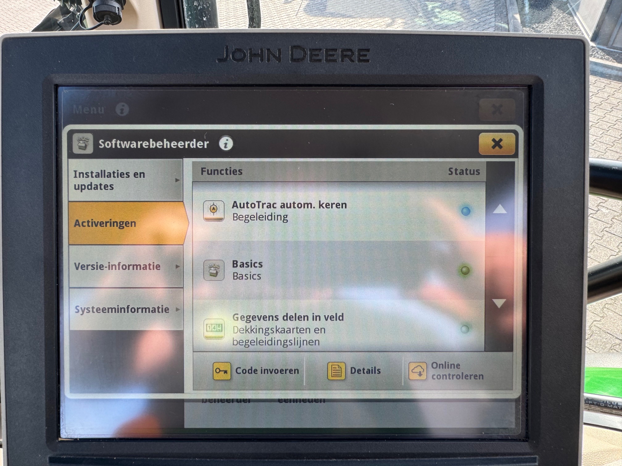 AP 50KM, TLS, HCS, 3dw en 2-leiding remventiel, LS-aansluitingen, AUTOTRAC-READY + activaties, STEEKASSEN, ad-blue, airco, panoramadak, originele JD fronthef met 1dw voorop, frontbediening en 7-polige stekker, B-Stijl cabine (dus met kleine goed sluitende deur), achterruitenwisser, hef-, en pto-bediening op spatbord, stoelverwarming, flessenhouders, zonneschermen voor + achter, koelvak.