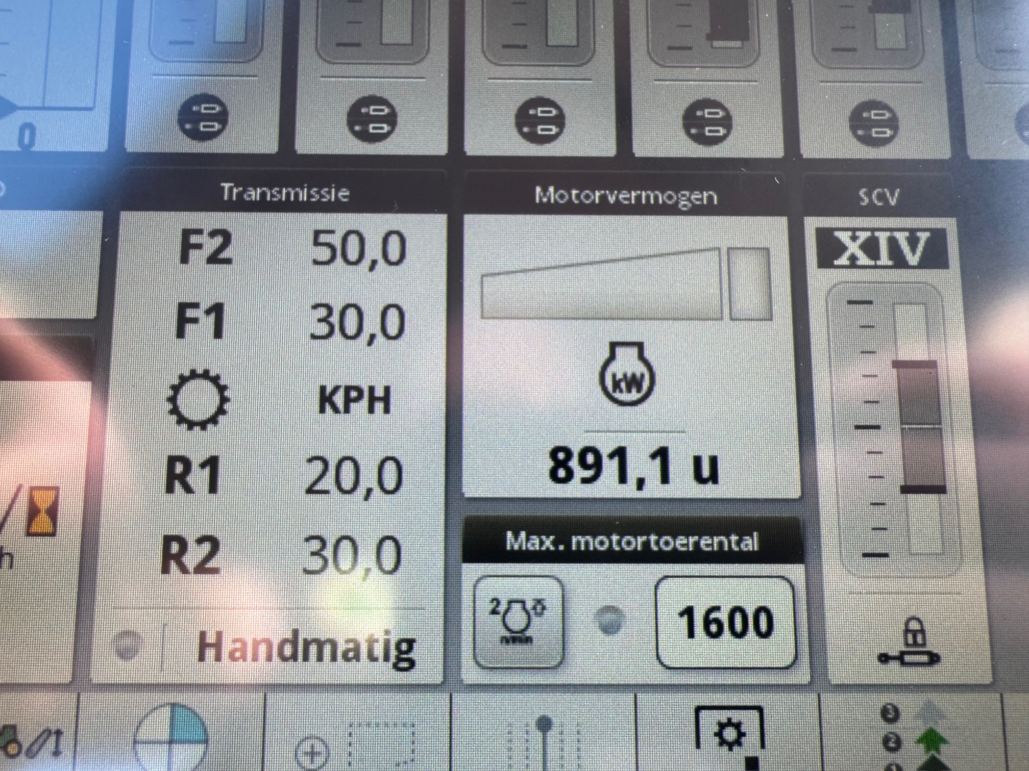 Achterbanden 460/85R38 80%, voorbanden 420/70R28 80%.