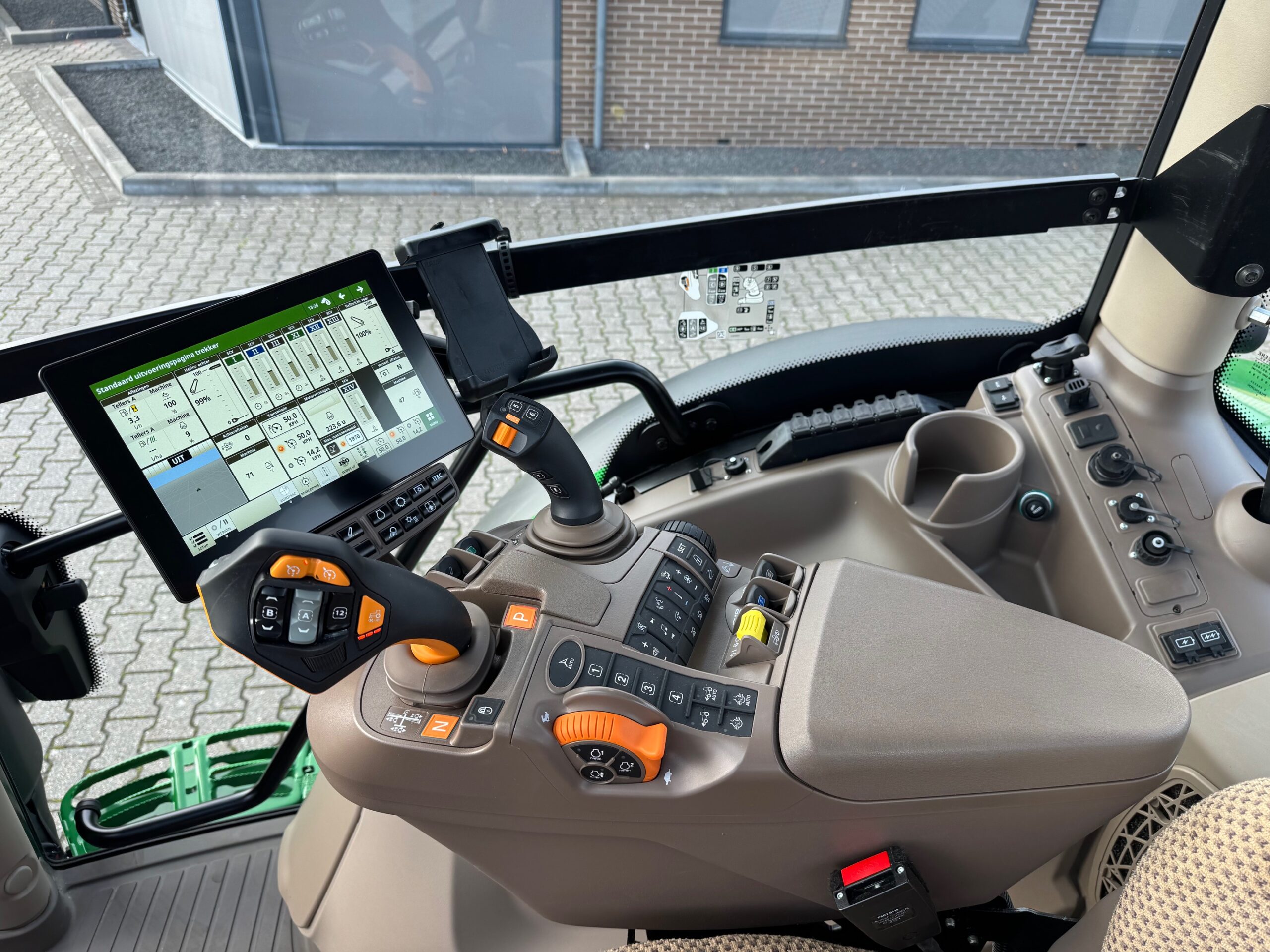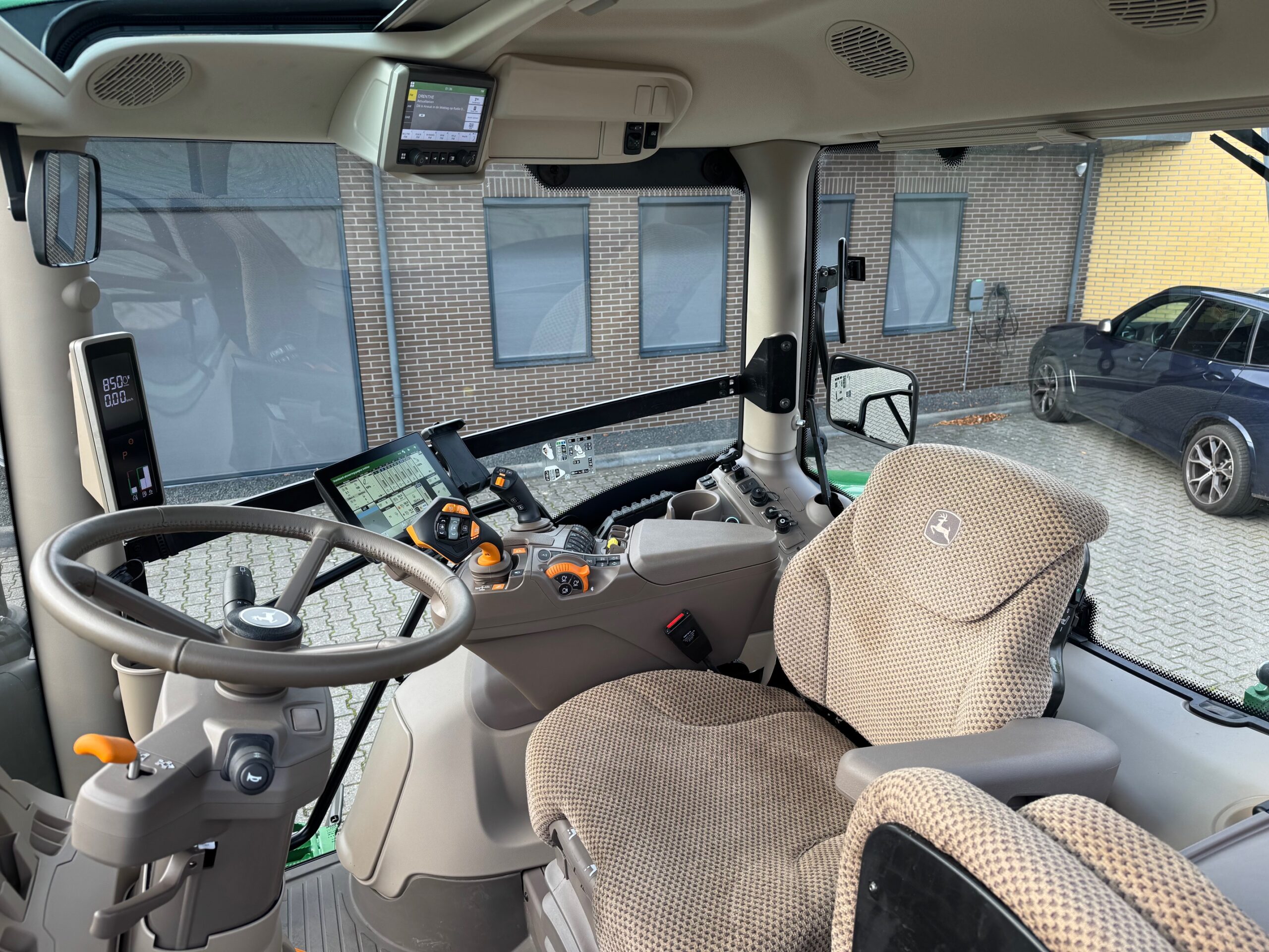 AP 50KM met Command-Pro en G5-display, TLS, geveerde cabine, 3dw en 2-leiding remventiel, LS-aansluitingen, isobus, STEEKASSEN, ad-blue, airco, panoramadak, originele JD fronthef met 1dw voorop, frontbediening en 7-polige stekker, B-Stijl cabine (dus met kleine goed sluitende deur), achterruitenwisser, hef-, en pto-bediening op spatbord, stoelverwarming, flessenhouders, zonneschermen voor + achter, leren stuur, grote touchscreen radio, elektrische- en verwarmde spiegels.