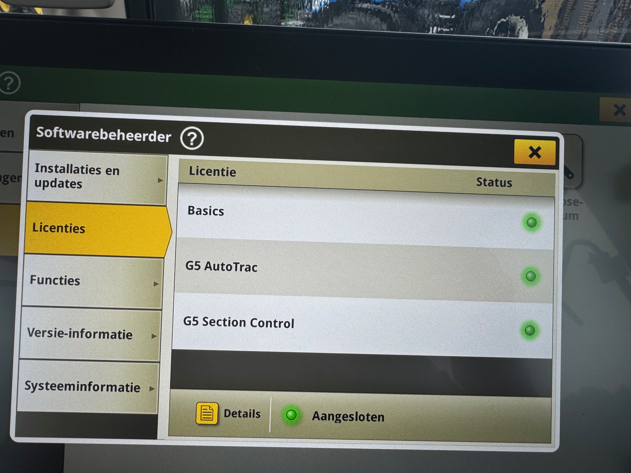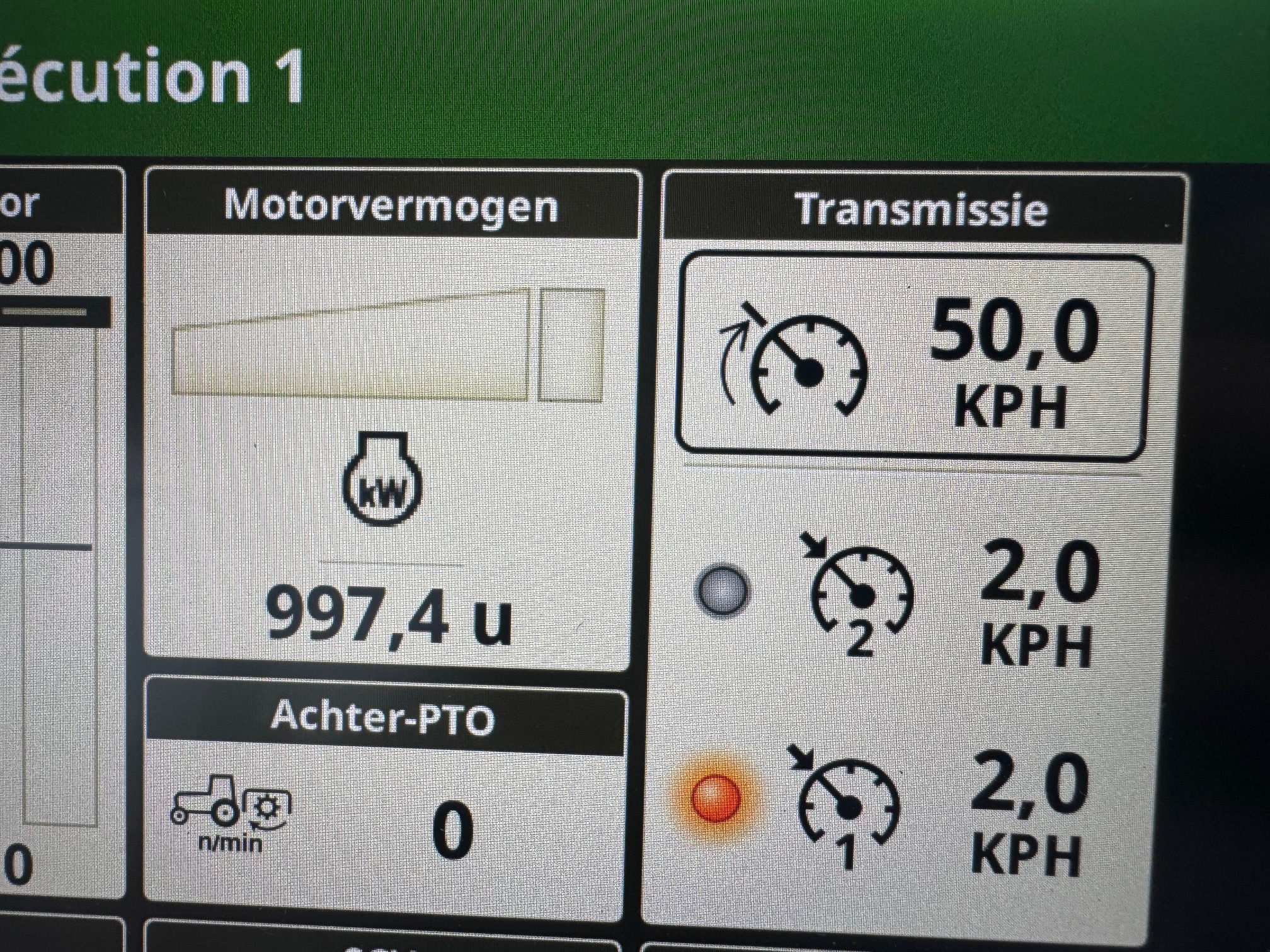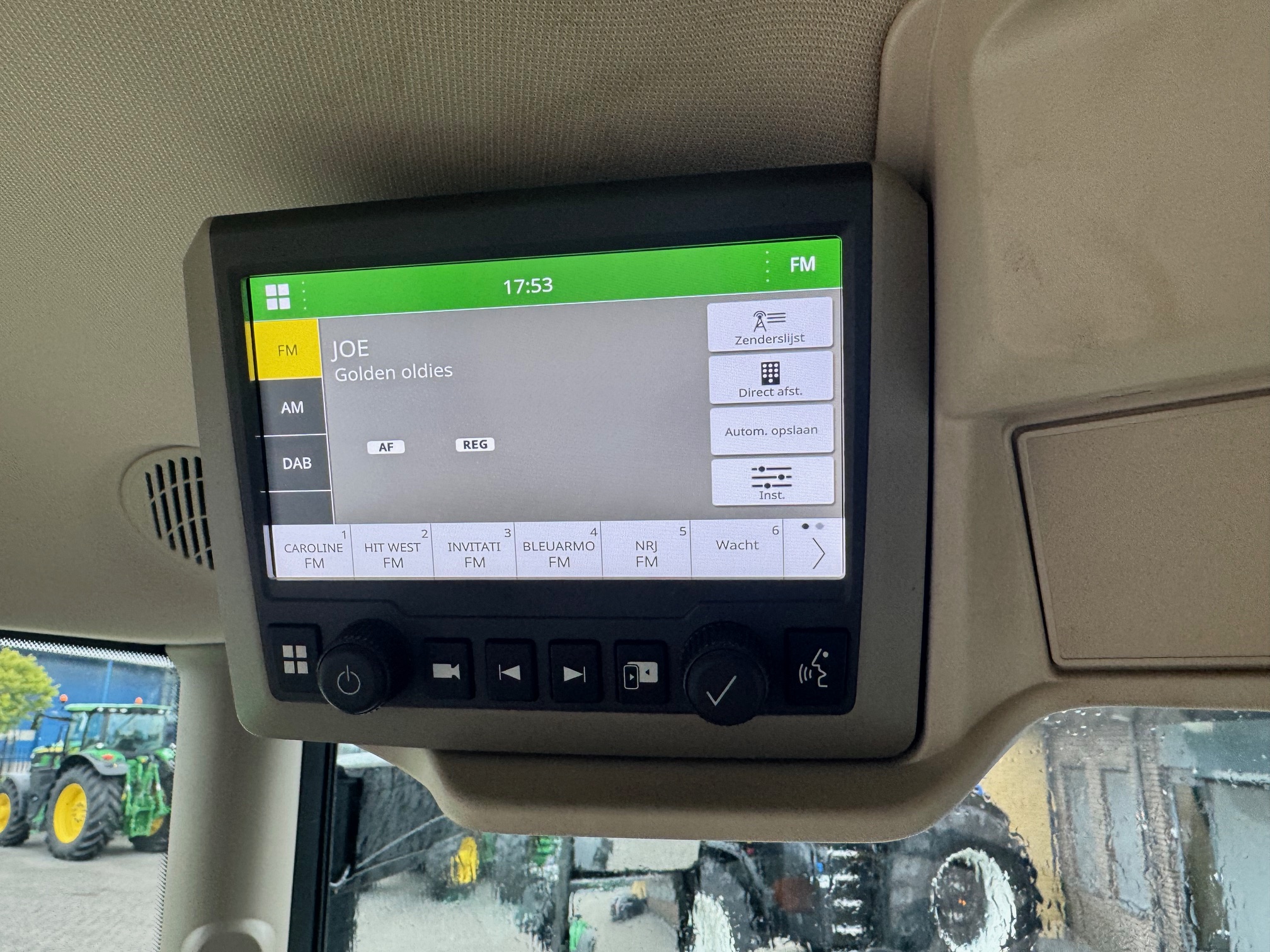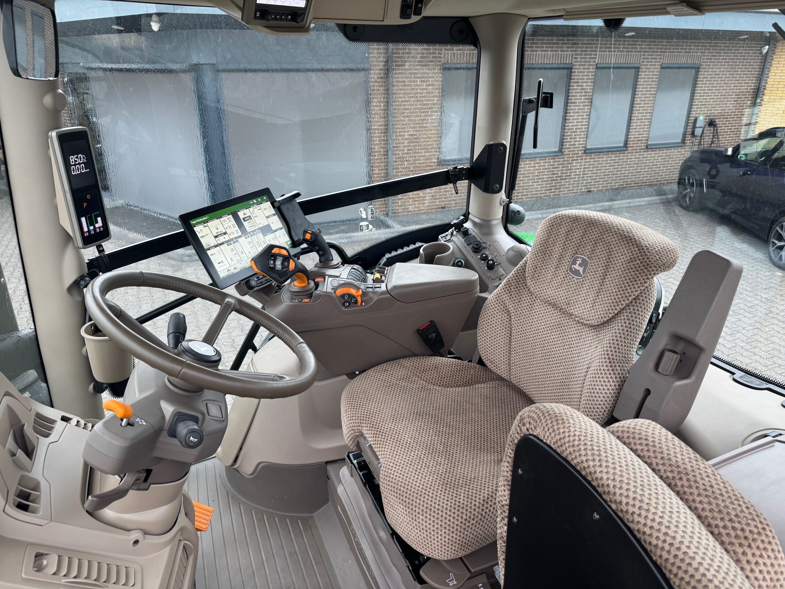 AP 50Km met Command-Pro met G5-Plus display, TLS, geveerde cabine, 4dw en remventiel, luchtdruk, LS-aansluitingen, STEEKASSEN, B-Stijl cabine (dus met kleine goed sluitende deur), Autotrac-ready met activaties, originele JD fronthef met 1dw en 7-polige stekker voorop en frontbediening, ad-blue, grote touchscreen radio, achterruitenwisser, stoelverwarming, flessenhouder, zonneschermen voor + achter, elektrische- en verwarmde spiegels, leren stuur.