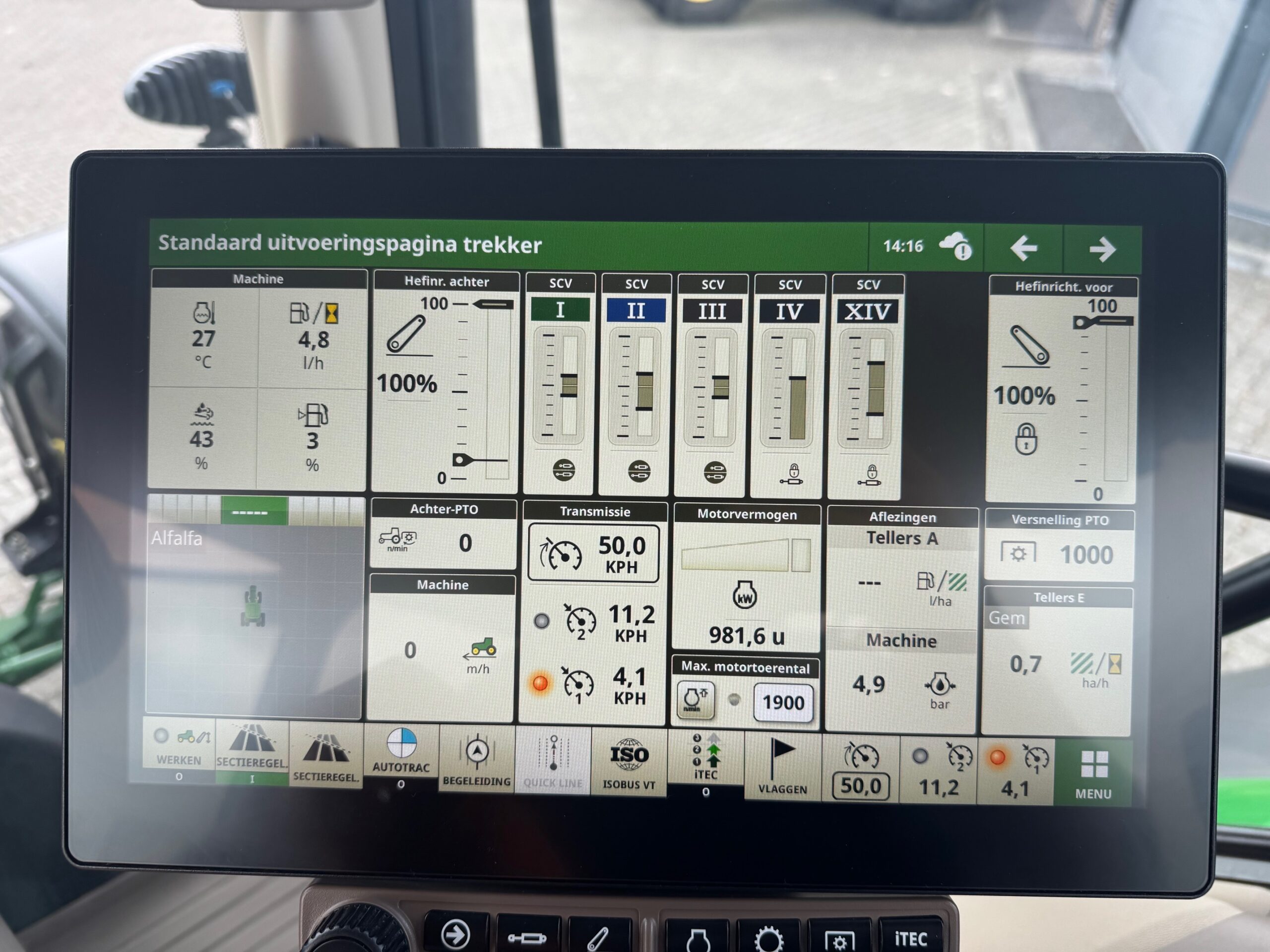 AP 50KM met Command-Pro en het nieuwe G5 Plus display, TLS. geveerde cabine, 4dw en remventiel, luchtdruk, LS-aansluitingen, AUTOTRAC-READY + activaties, STEEKASSEN, B-Stijl cabine (dus met kleine goed sluitende deur), ad-blue, originele JD fronthef met 1dw voorop, frontbediening en 7-polige stekker, achterruitenwisser, hef-, pto- en ventiel-bediening op spatbord, elektrische- en verwarmde spiegels, stoelverwarming, flessenhouder, zonneschermen voor + achter, koelvak, inklapbare breedteborden, trekhaakrail met verwisselbare kipperknobbel.