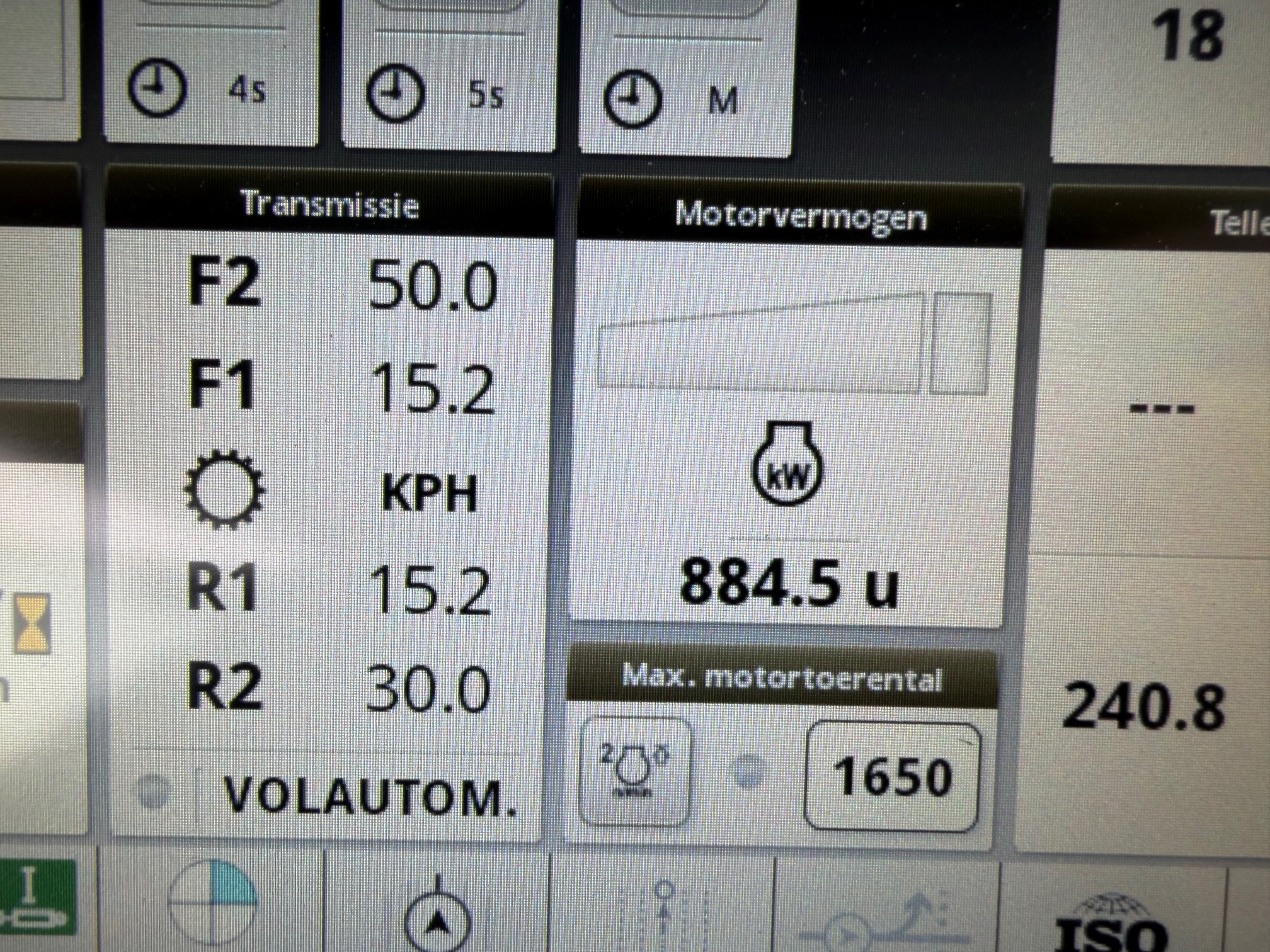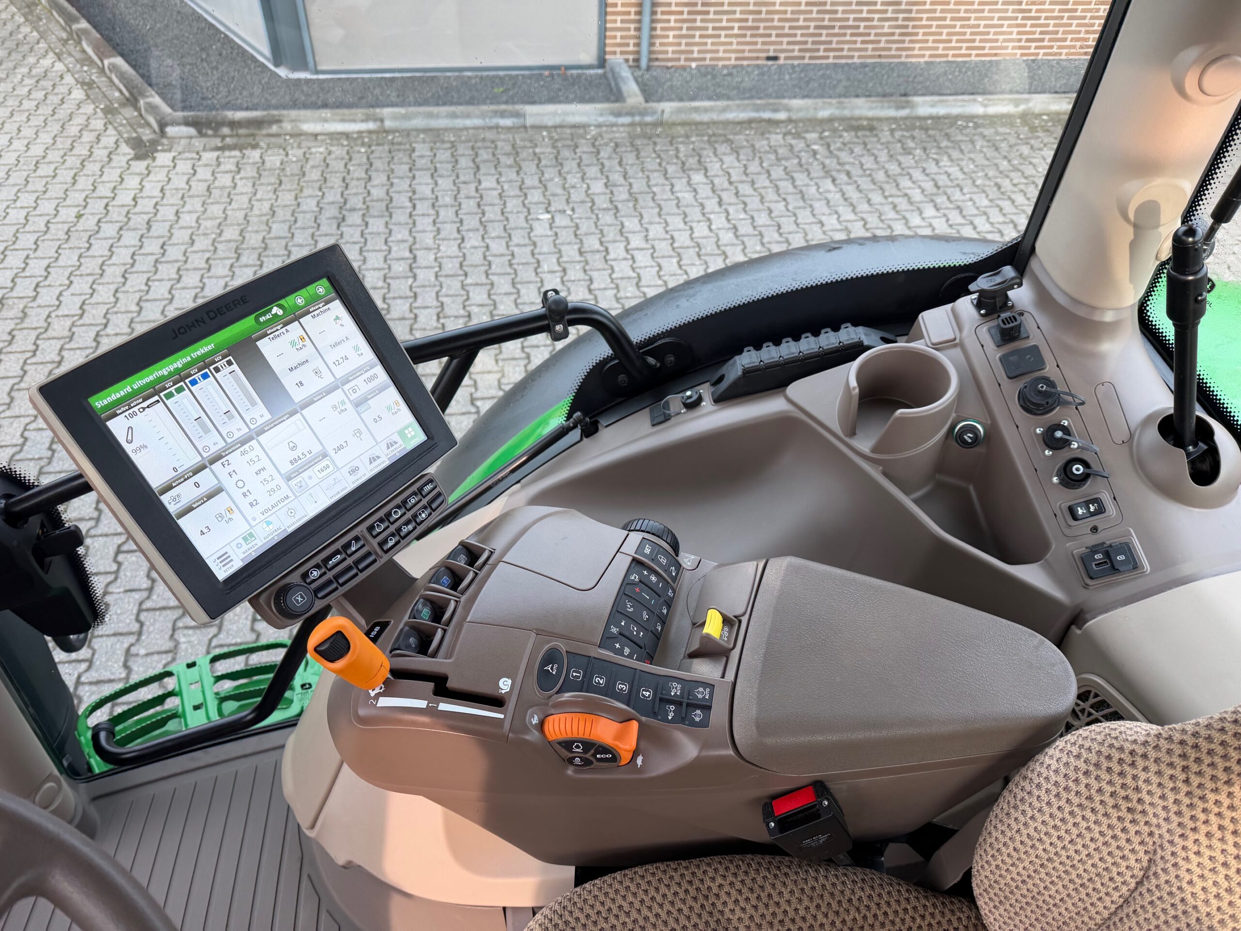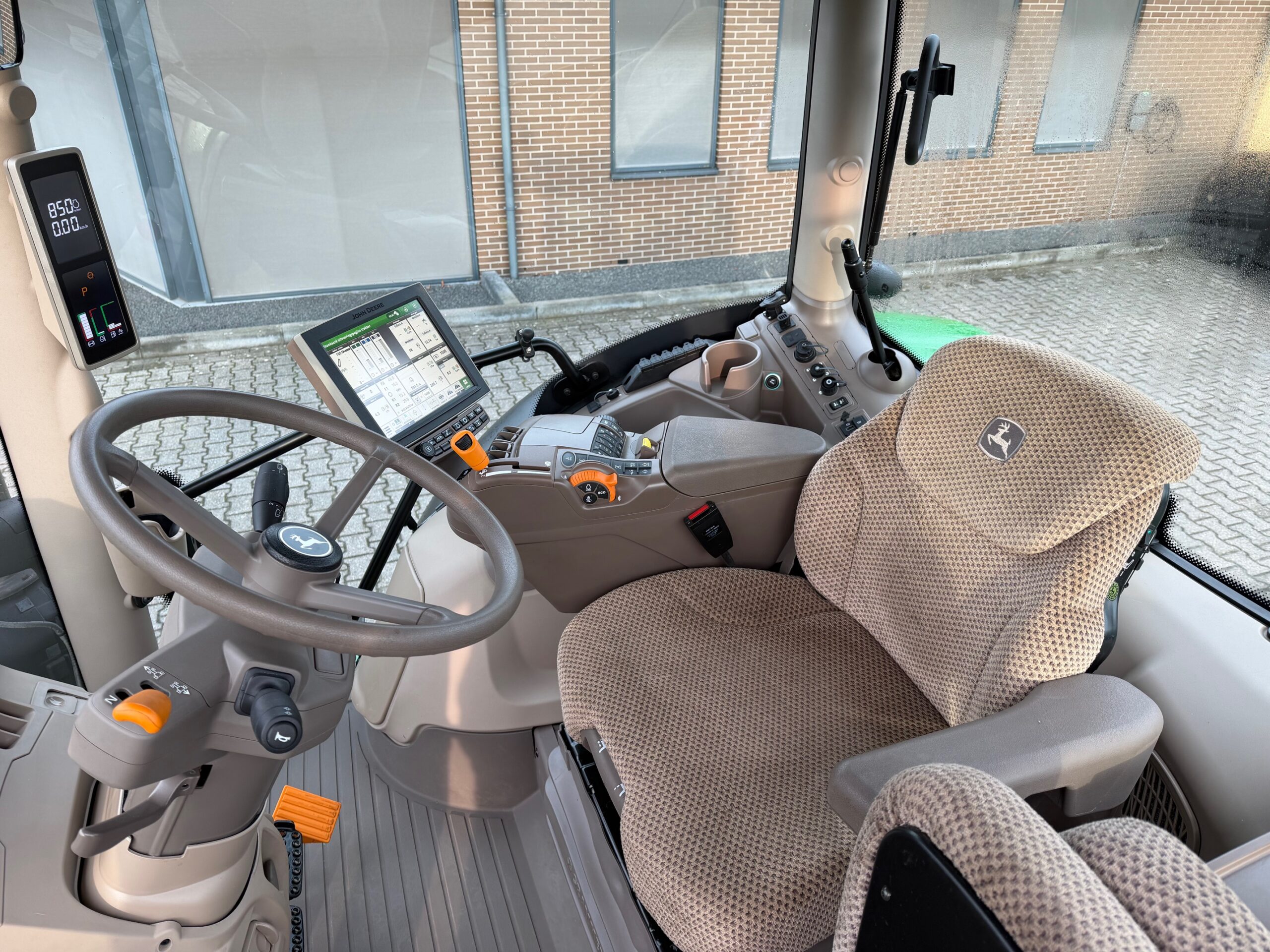 AP 50KM, TLS, geveerde cabine, 3dw en remventiel, luchtdruk, LS-aansluitingen, airco, glazen dakluikje, AUTOTRAC-READY + activaties, ad-blue, fronthef, stoelverwarming, zonneschermen voor + achter, elektrische- en verwarmde spiegels, flessenhouders, hef- en pto-bediening op spatbord, draaibare voorspatborden, achterruitenwisser.