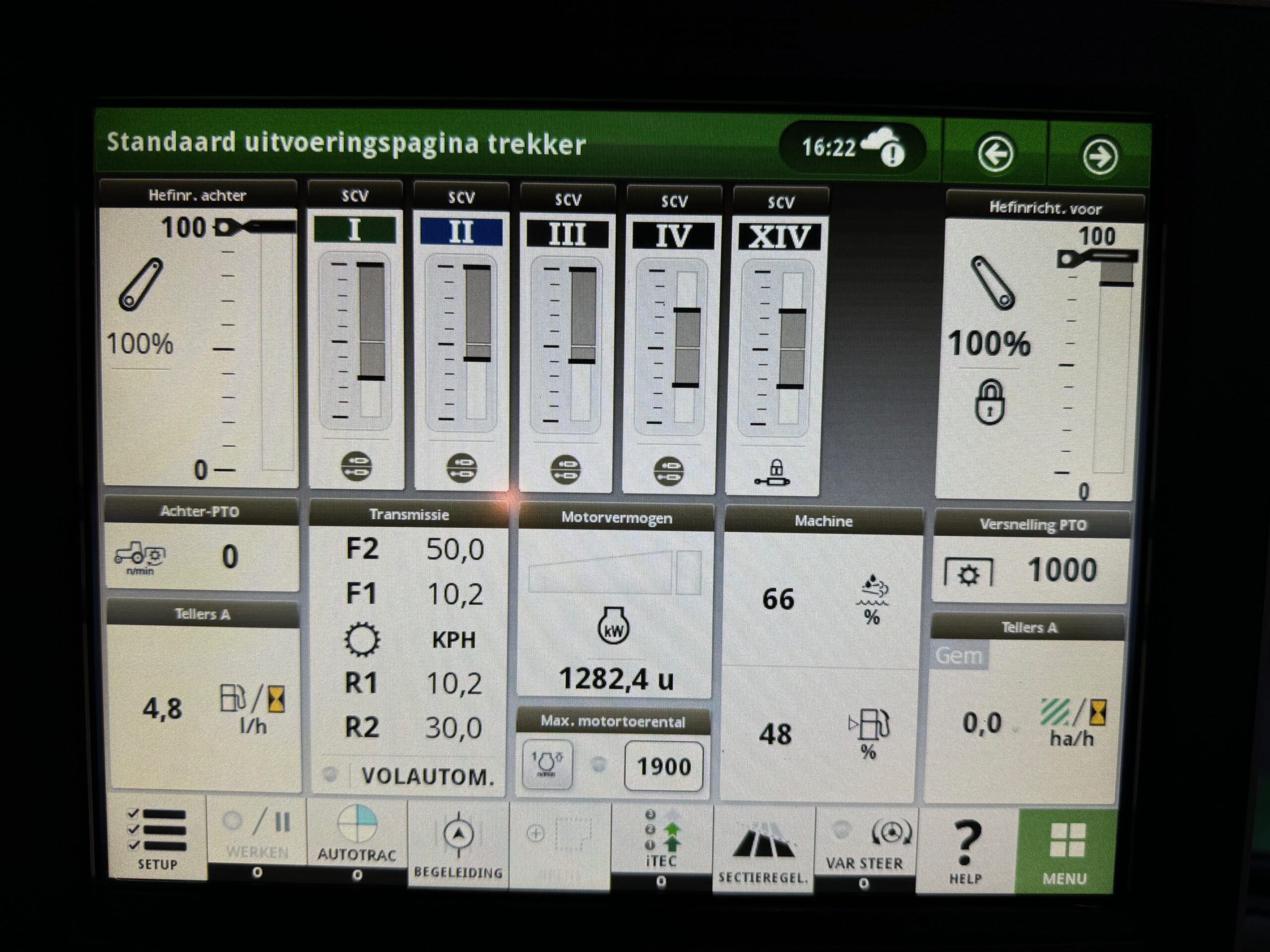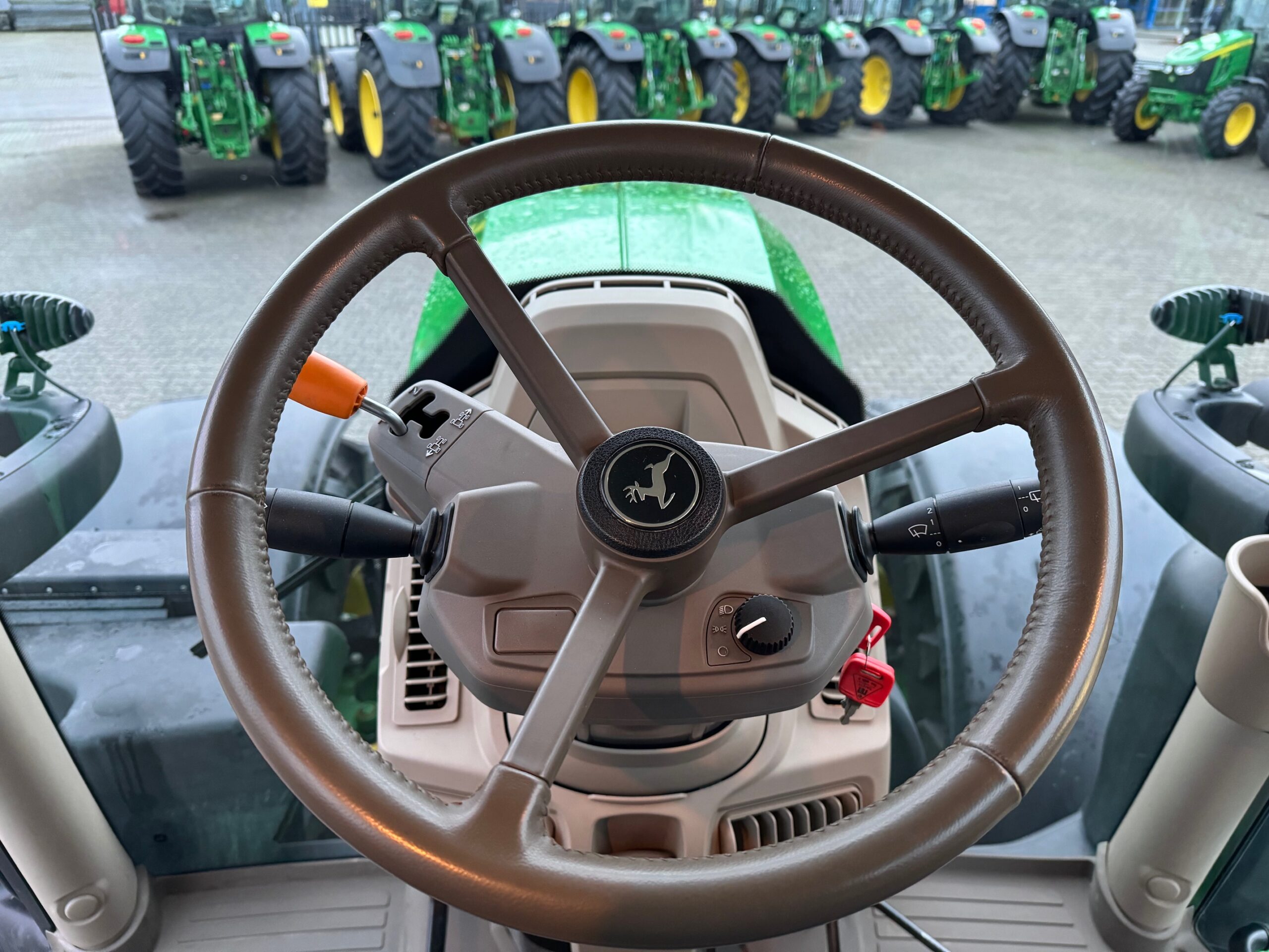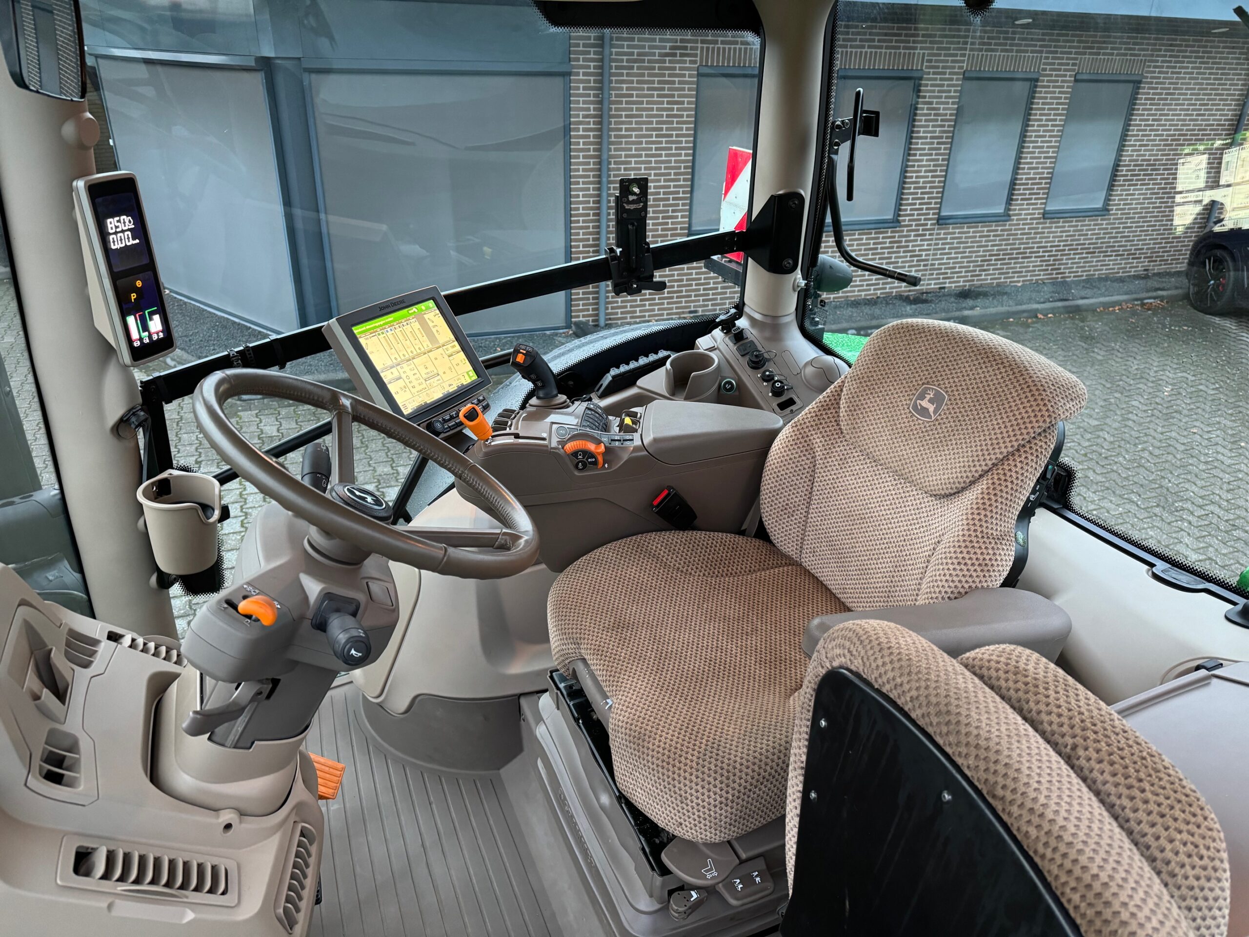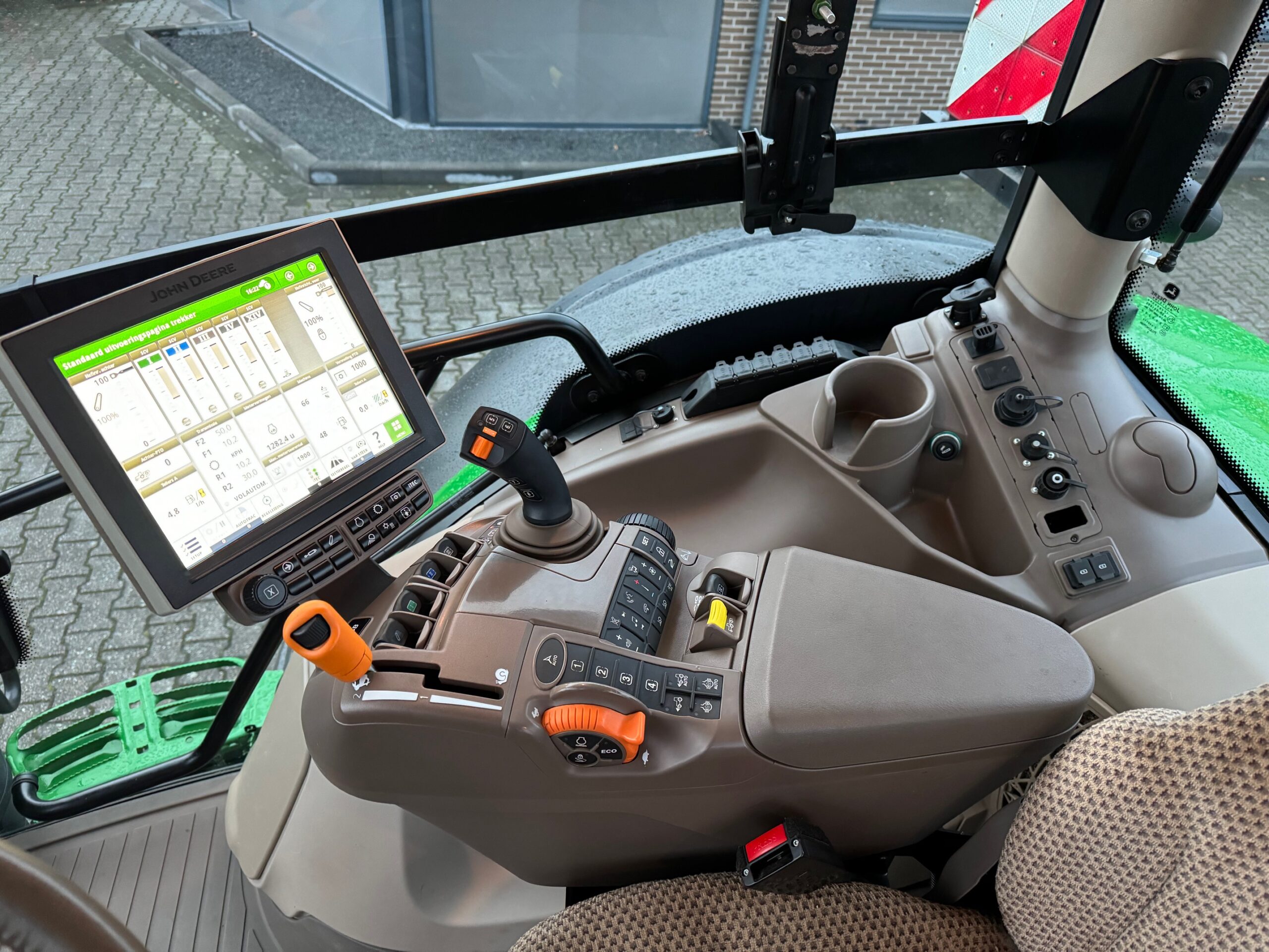 AP 50KM, TLS, geveerde cabine, 4dw en remventiel, luchtdruk, LS-aansluitingen, AUTOTRAC-READY + activaties, B-Stijl cabine (dus met de kleine goed sluitende deur), ad-blue, trekhaak rail met verwisselbare kipperknobbel onder, inklapbare breedteborden, achterruitenwisser, originele JD fronthef met 1dw voorop en frontbediening, elektrische- en verwarmde spiegels, nieuw type joystick in de armleuning met omkeerschakeling, stoelverwarming, zonneschermen voor + achter, leren stuur.