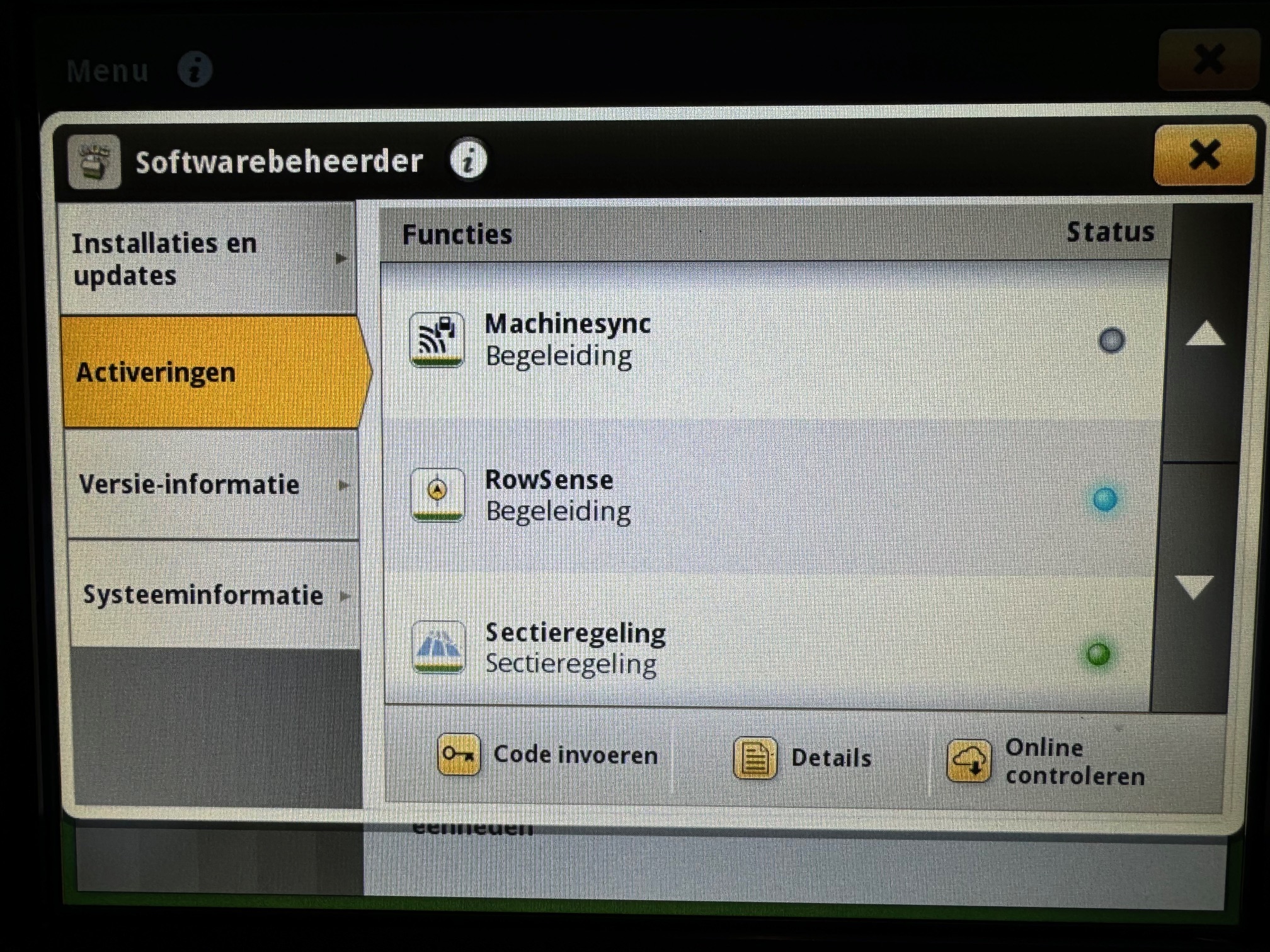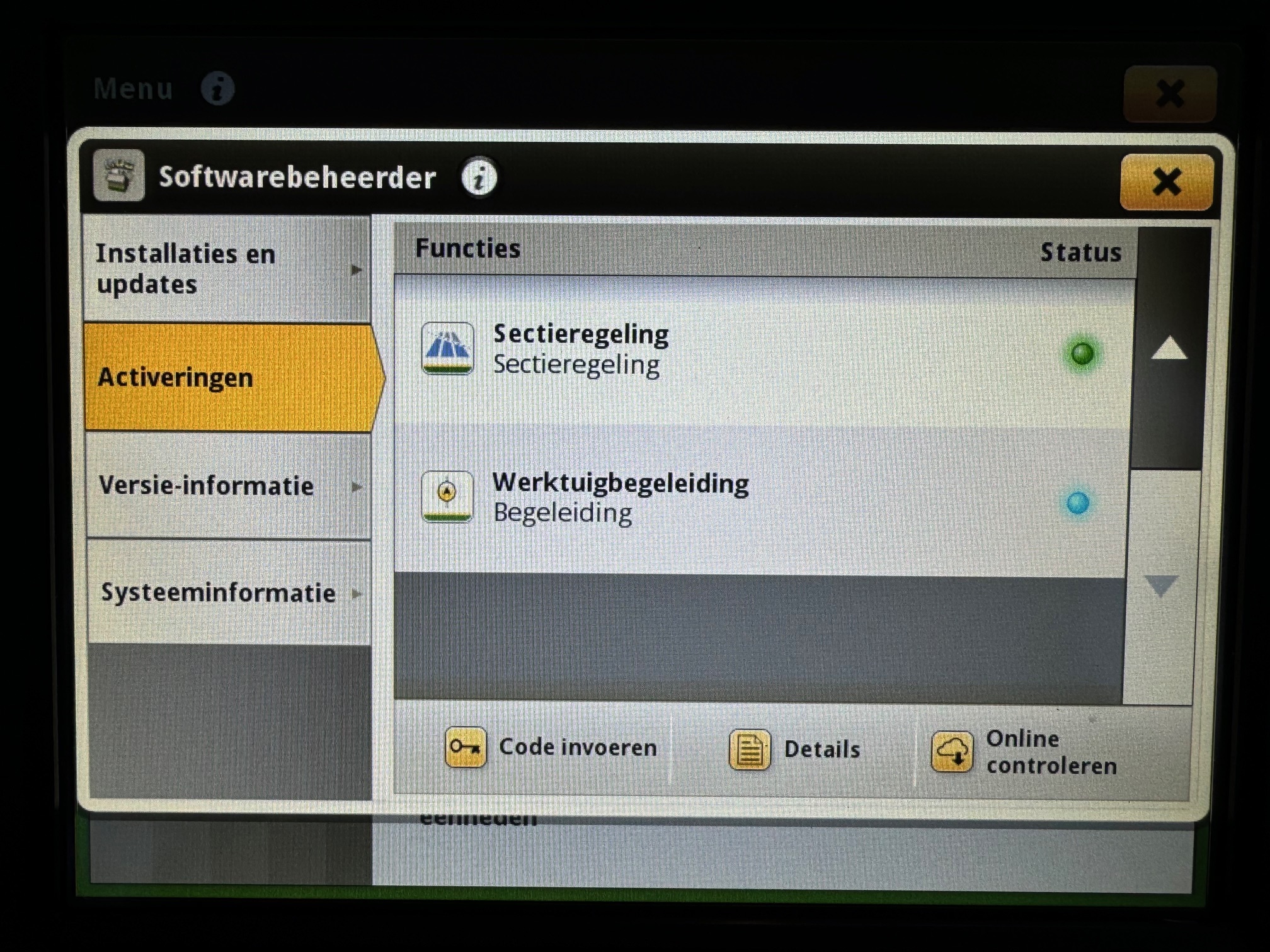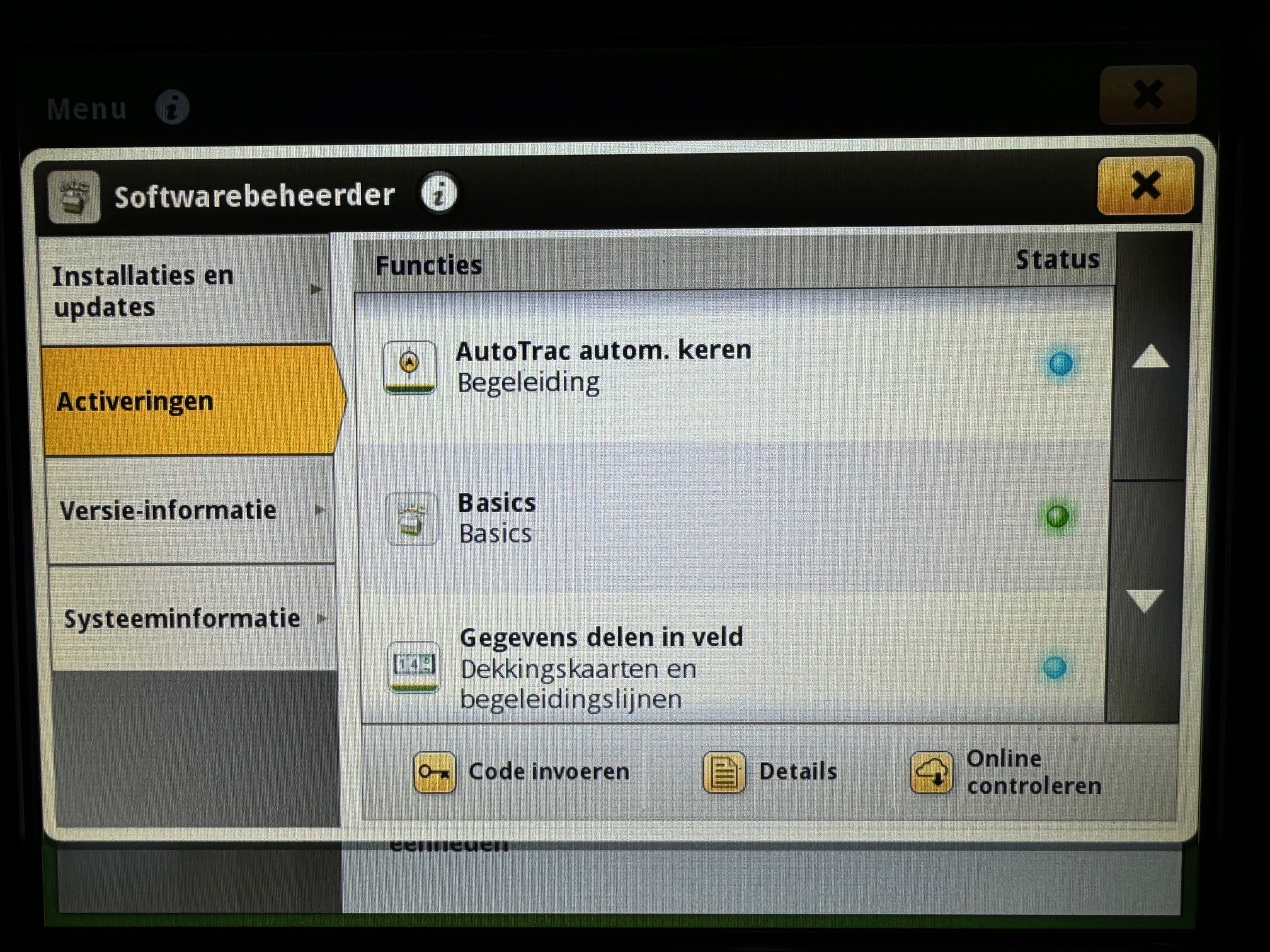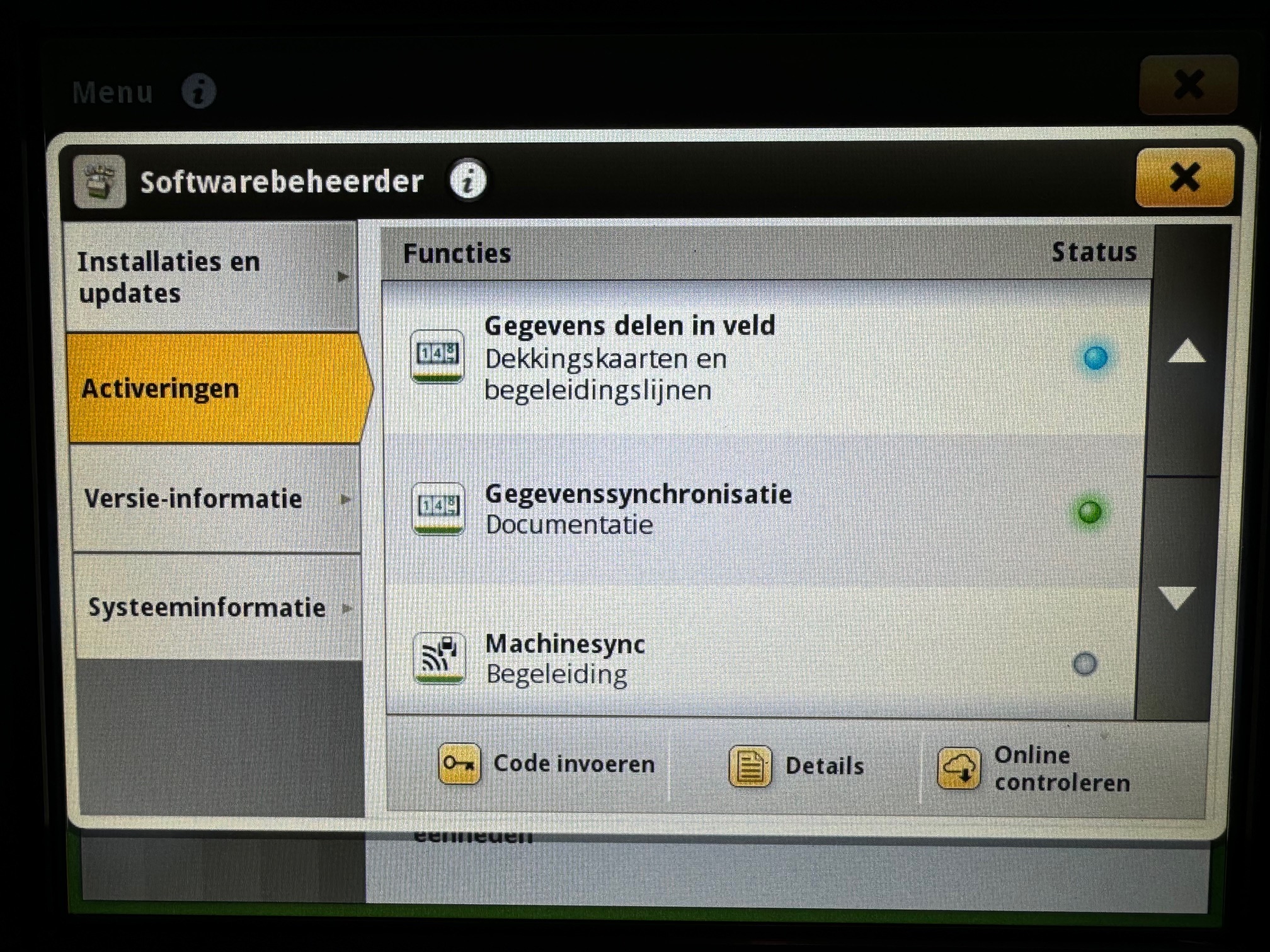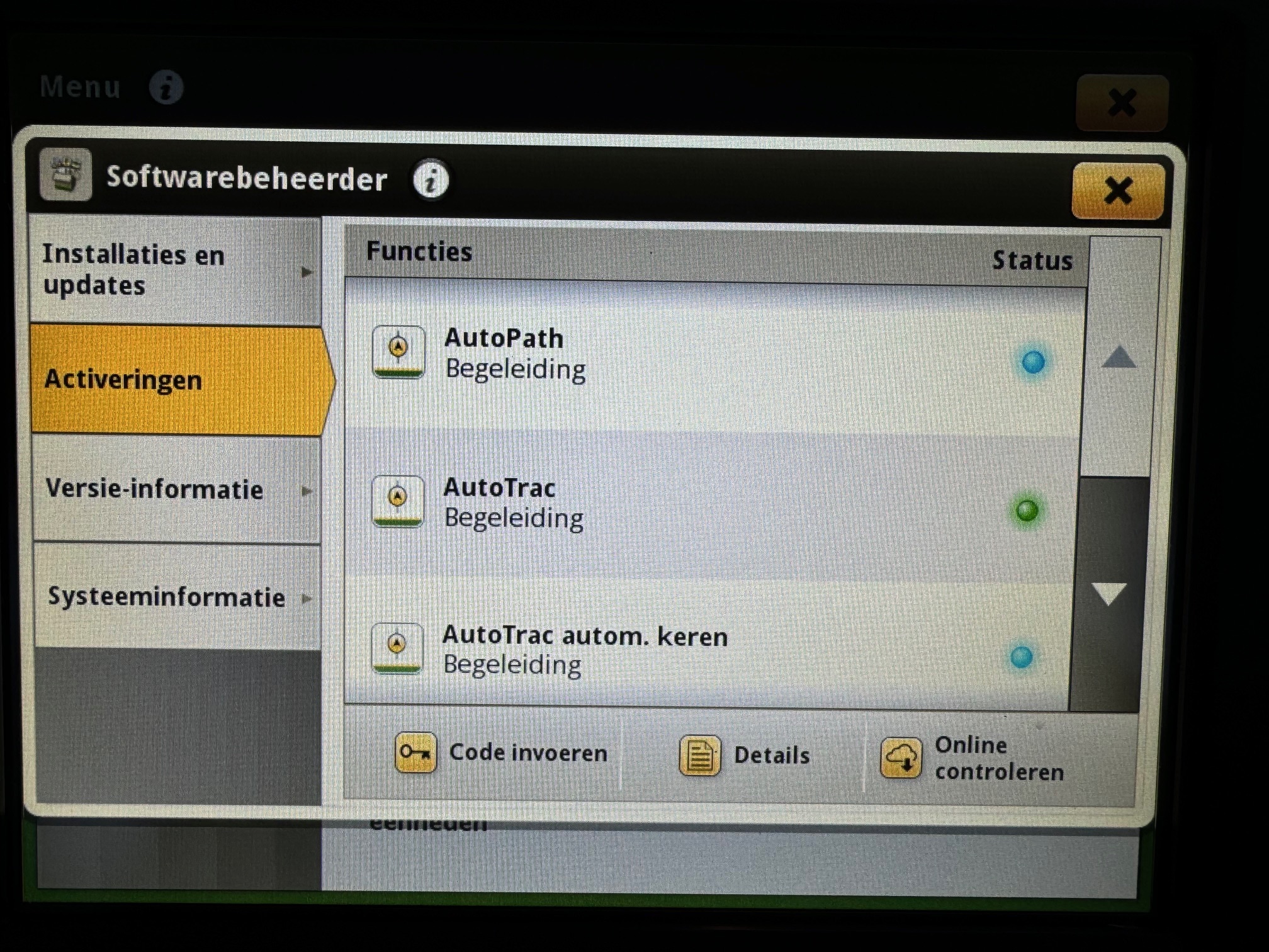 AP 50KM, TLS, geveerde cabine, 4dw en remventiel, luchtdruk, LS-aansluitingen, AUTOTRAC-READY + activaties, B-Stijl cabine (dus met de kleine goed sluitende deur), ad-blue, trekhaak rail met verwisselbare kipperknobbel onder, inklapbare breedteborden, achterruitenwisser, originele JD fronthef met 1dw voorop en frontbediening, elektrische- en verwarmde spiegels, nieuw type joystick in de armleuning met omkeerschakeling, stoelverwarming, zonneschermen voor + achter, leren stuur.