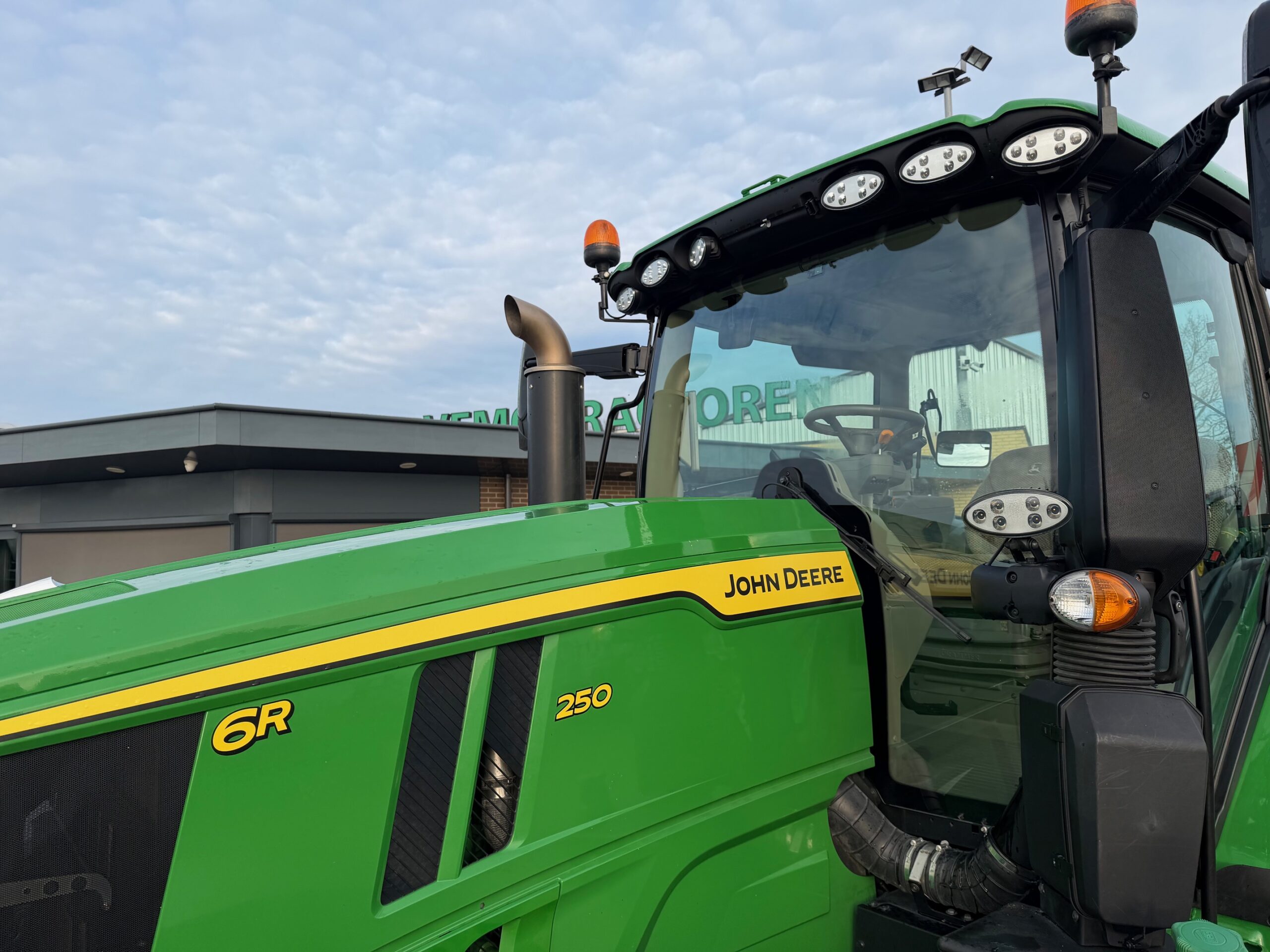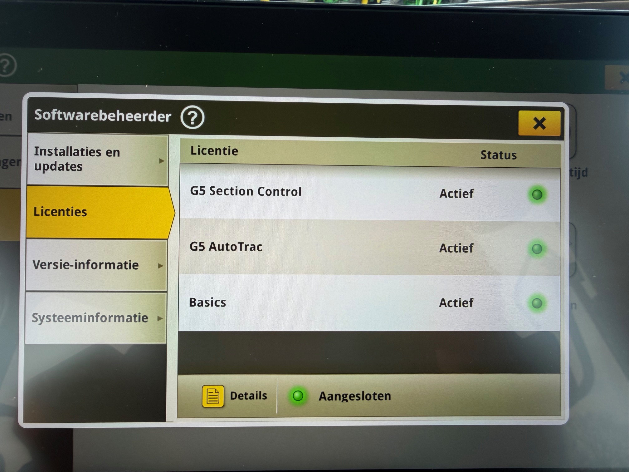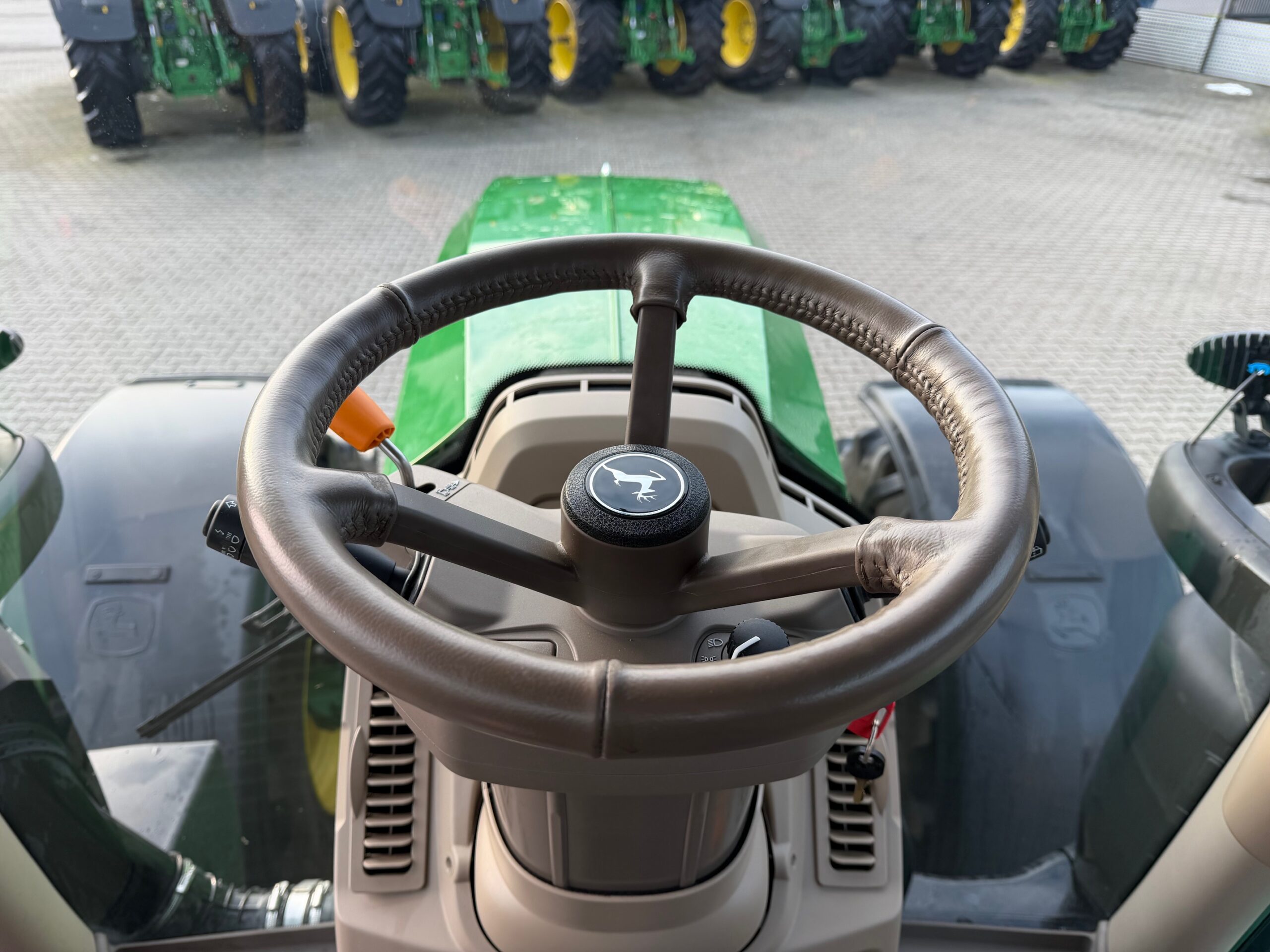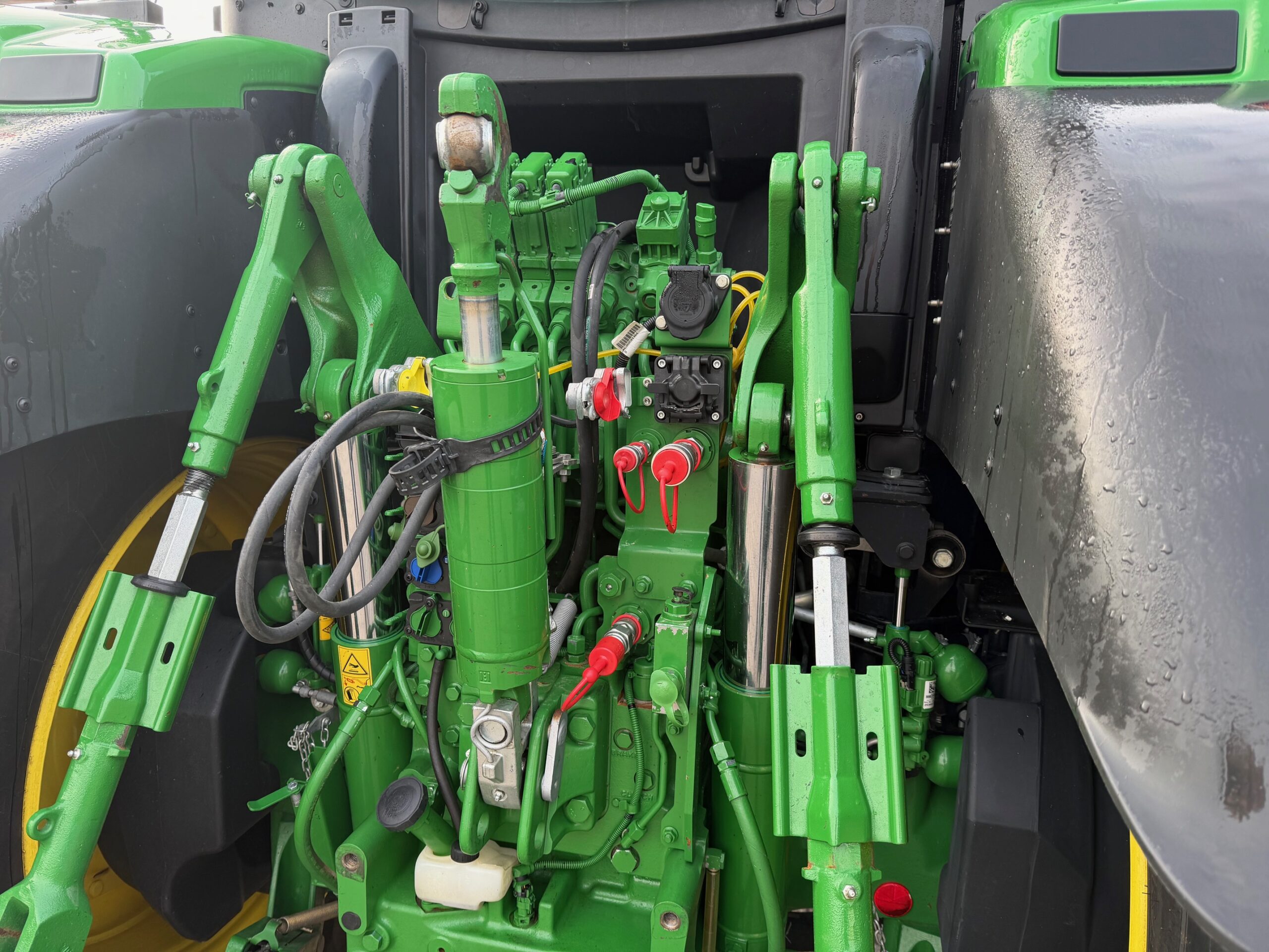 AP 50KM met Command-Pro en G5-Plus display, TLS, geveerde cabine, 4dw en remventiel, luchtdruk, LS-aansluitingen, AUTOTRAC-READY + activaties, airco, originele JD fronthef met 2dw voorop en 7-polige stekker, ook isobus en frontbediening, B-Stijl cabine (dus met de kleine goed sluitende deur), hef-, pto- en ventiel-bediening op spatbord, hydraulische topstang, ABS-stekker, Ad-Blue, grote touchscreen radio, elektrische- en verwarmde spiegels, achterruitenwisser, rail voor bedieningskasten, stoelverwarming, zonneschermen voor + achter, klein sportstuur, flessenhouders, koelvak, draaibare voorspatborden, set wielgewichten, inklapbare breedteborden.