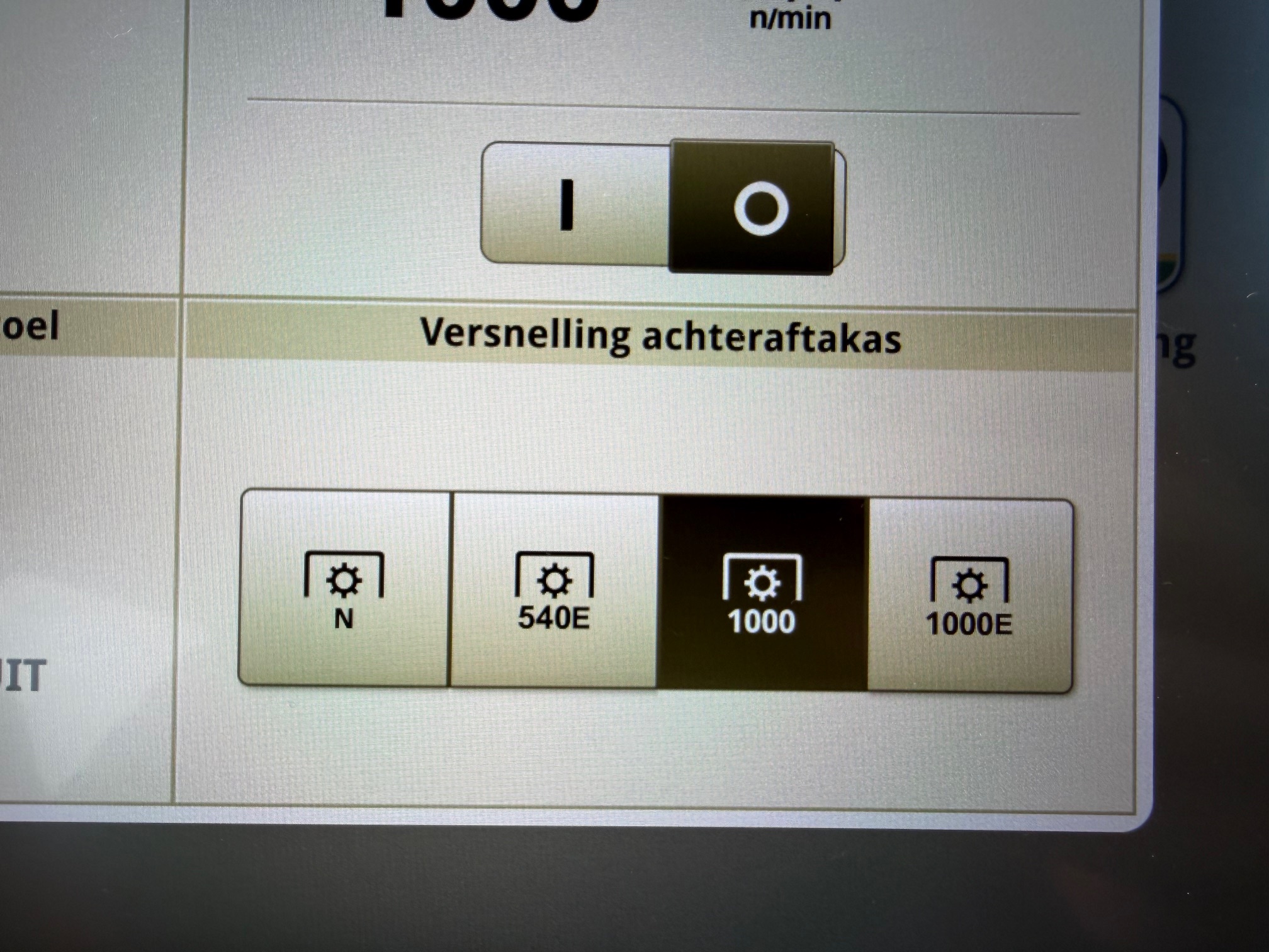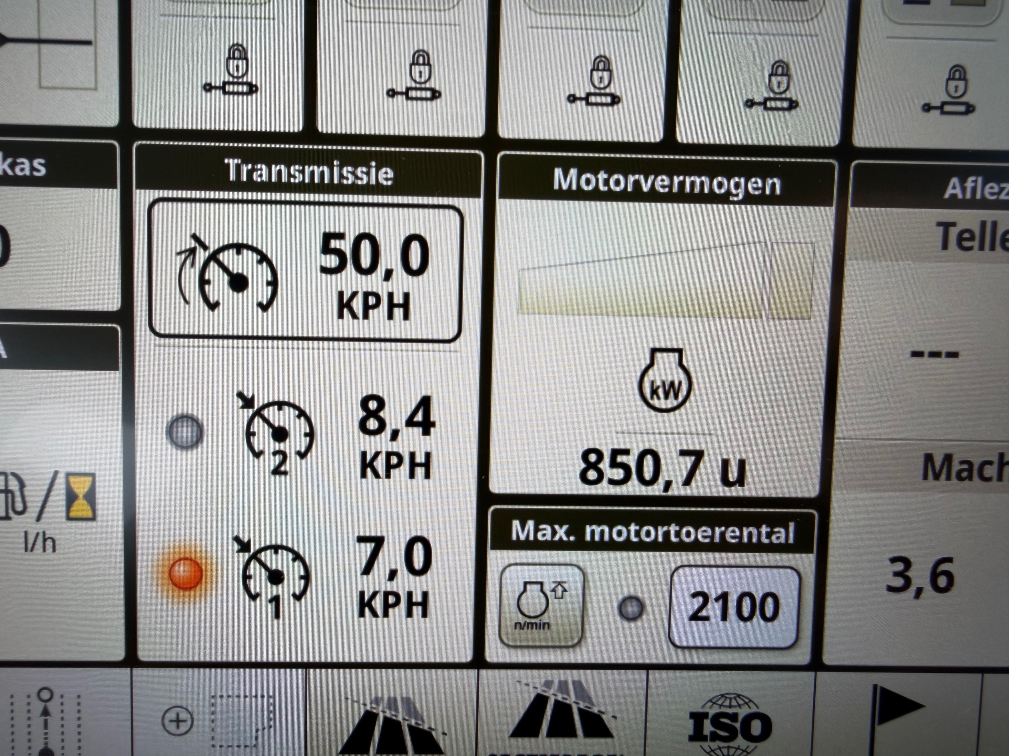 Achterbanden 710/70R42 90%, voorbanden 600/70R30 90%.