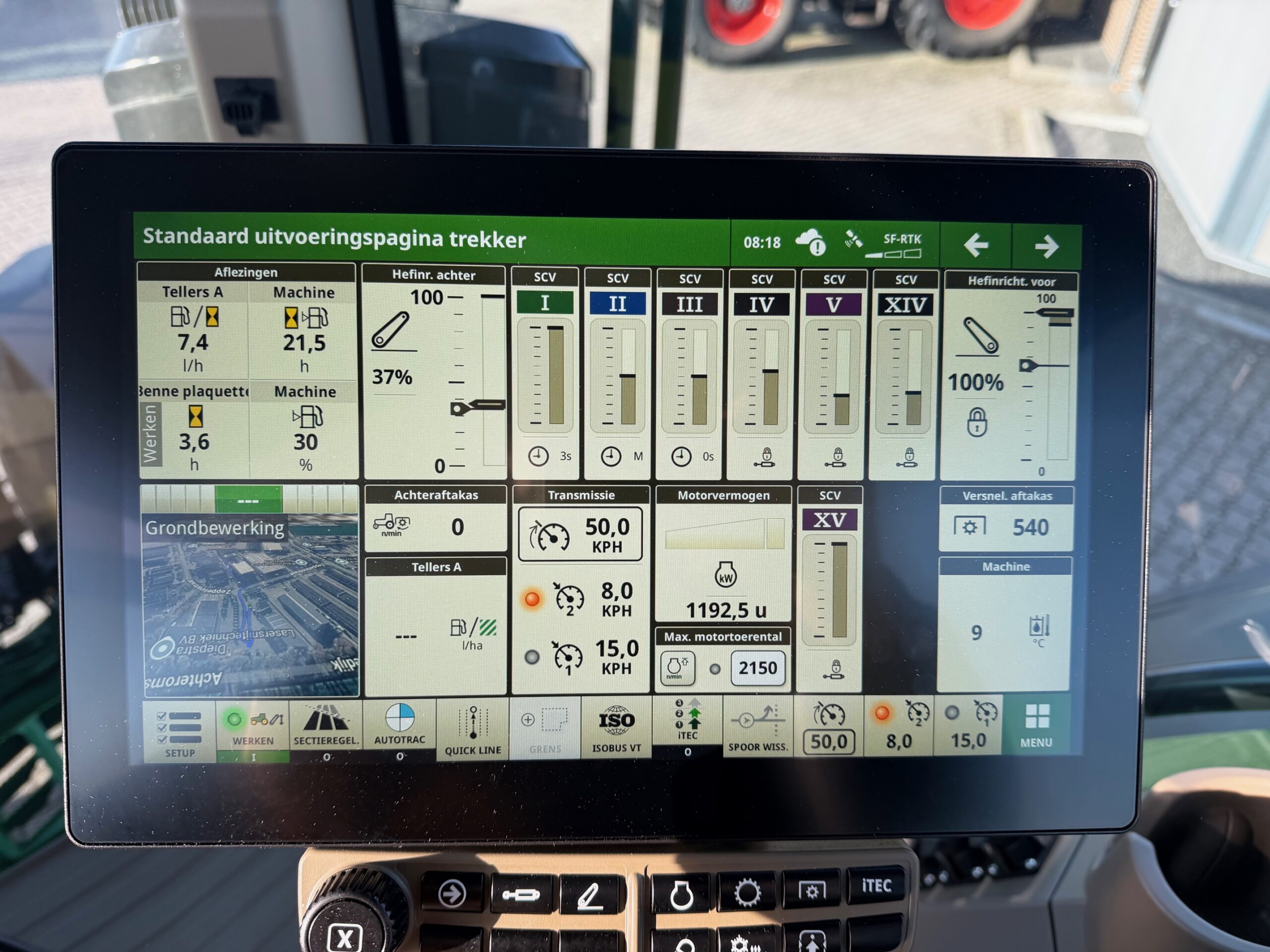 AP 50KM met Command-Pro en G5-Plus display, SIGNATURE EDITION, TLS, 5dw en 2-leiding remventiel, luchtdruk, LS aansluitingen, ABS stekker, airco, geïntegreerde SF7500 GPS-ontvanger (RTK), Autotrac-Ready + activaties, draaibare voorspatborden, massaslot, LED, hef-, pto- en ventiel-bediening op spatbord, hydraulische topstang, inklapbare breedteborden, achterruitenwisser, elektrische- en verwarmde spiegels, fronthef met 2dw en frontbediening, zonneschermen voor + achter + rechts, koelkast, touchscreen radio, grote wielgewichten, leren stuur, trekhaak rail met verstelbare kipperknobbel.