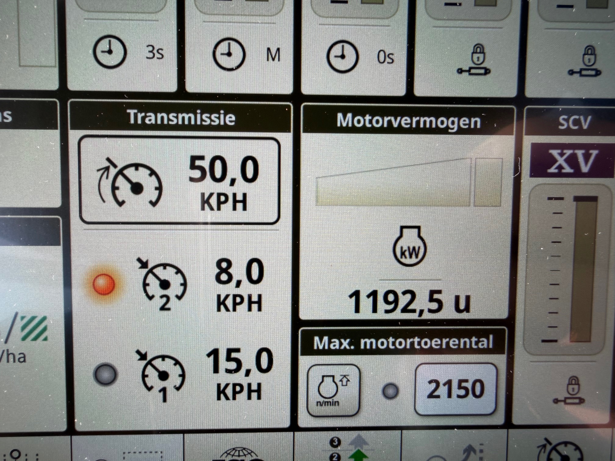 Achterbanden VF 710/75R42 95%, voorbanden VF 620/75R30 90%.